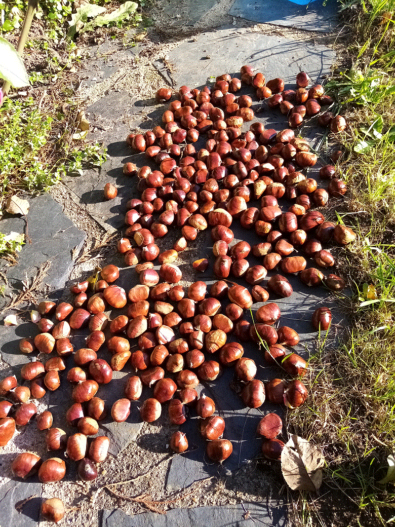 Les châtaignes sont rares et chères cette année à cause de la sécheresse. Il y a quinze jours, j'étais chez mon neveu dans les Cévennes et nous avons eu du mal à en ramasser 10 kg pour faire de la confiture. Et en plus bien petites....