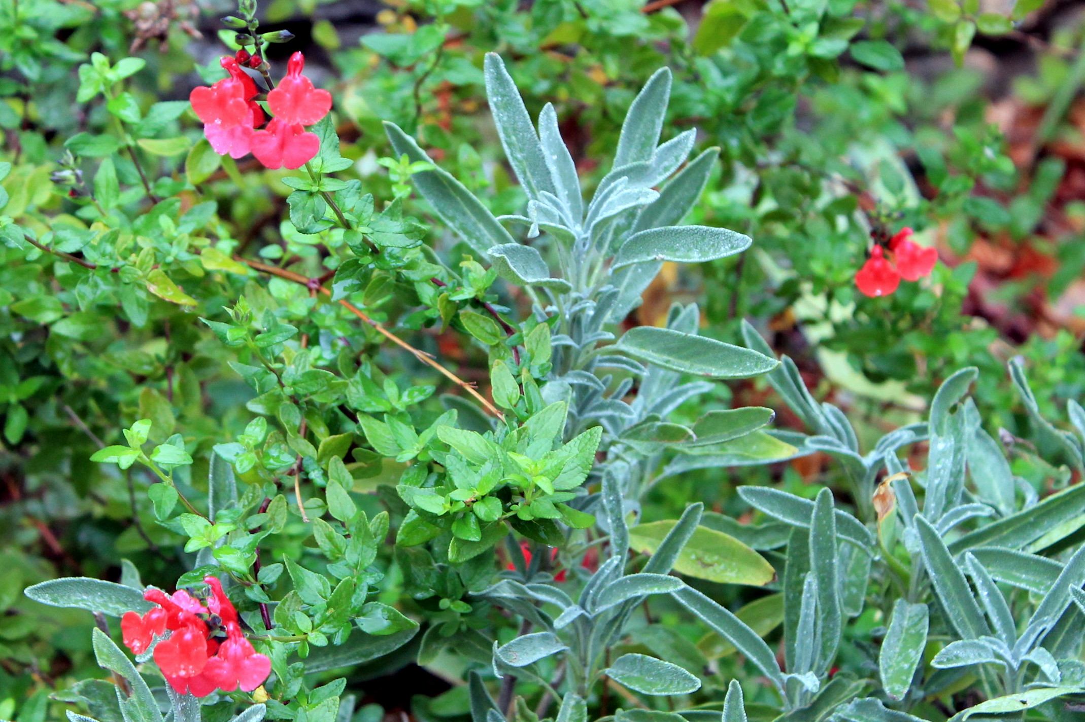 Quelques refloraisons : le choisya ternata, les rosiers qui apprécient une hygrométrie moins sahélienne, les sauges.