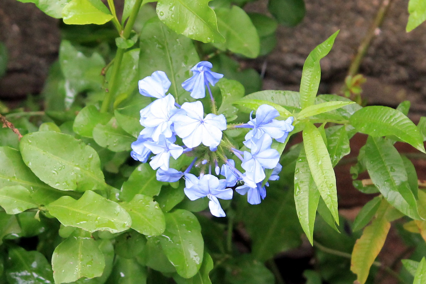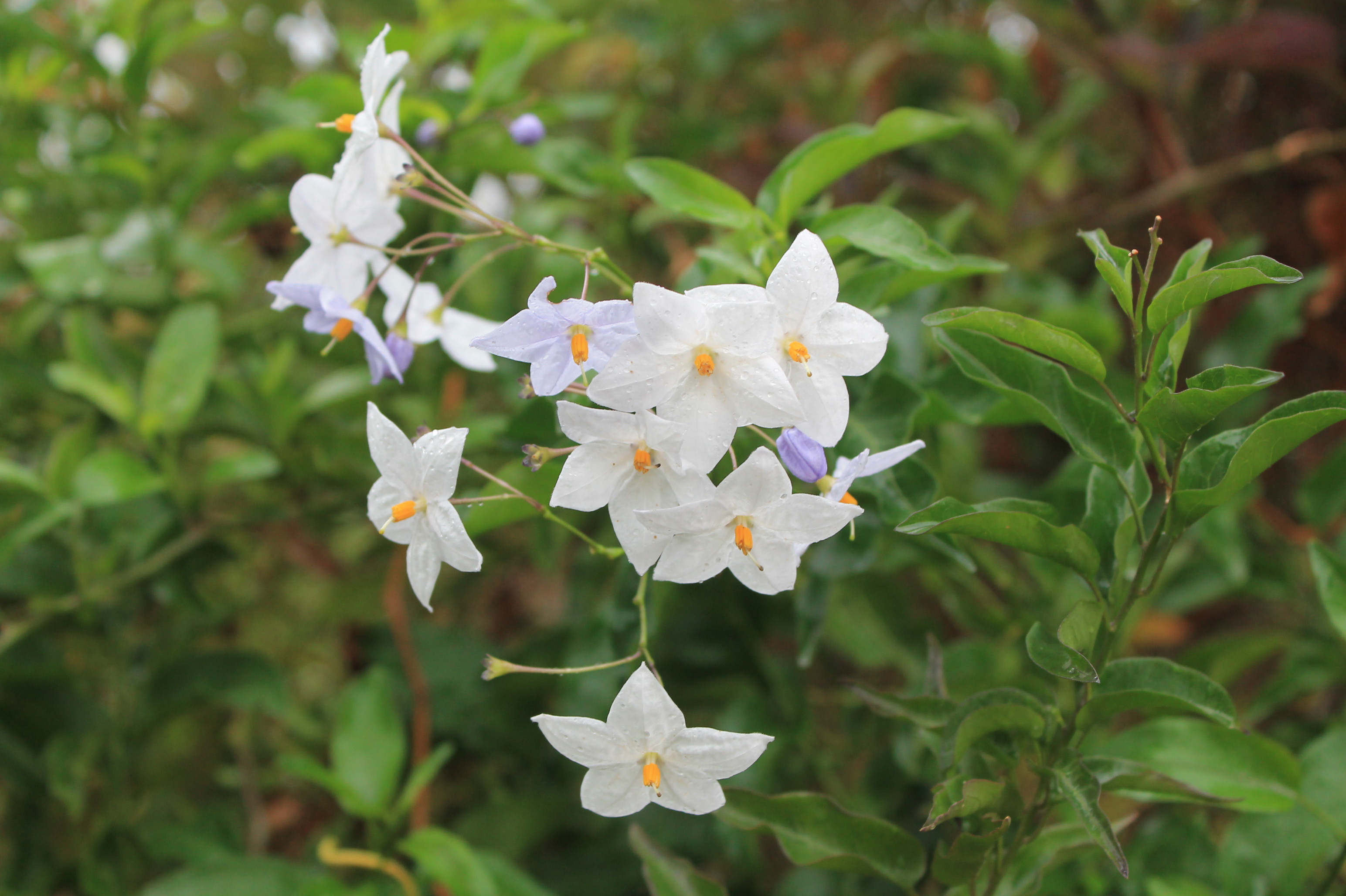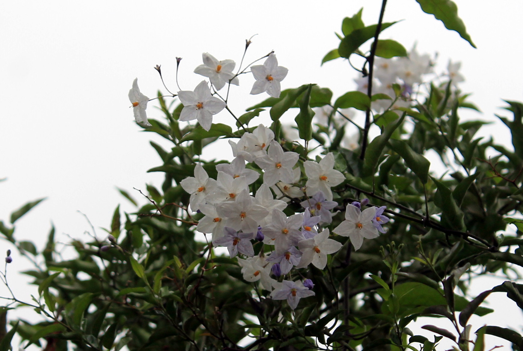 Heureusement, quelques fidèles à floraison permanente : Solanum jasminoïdes, Ipomées, Plumbago.