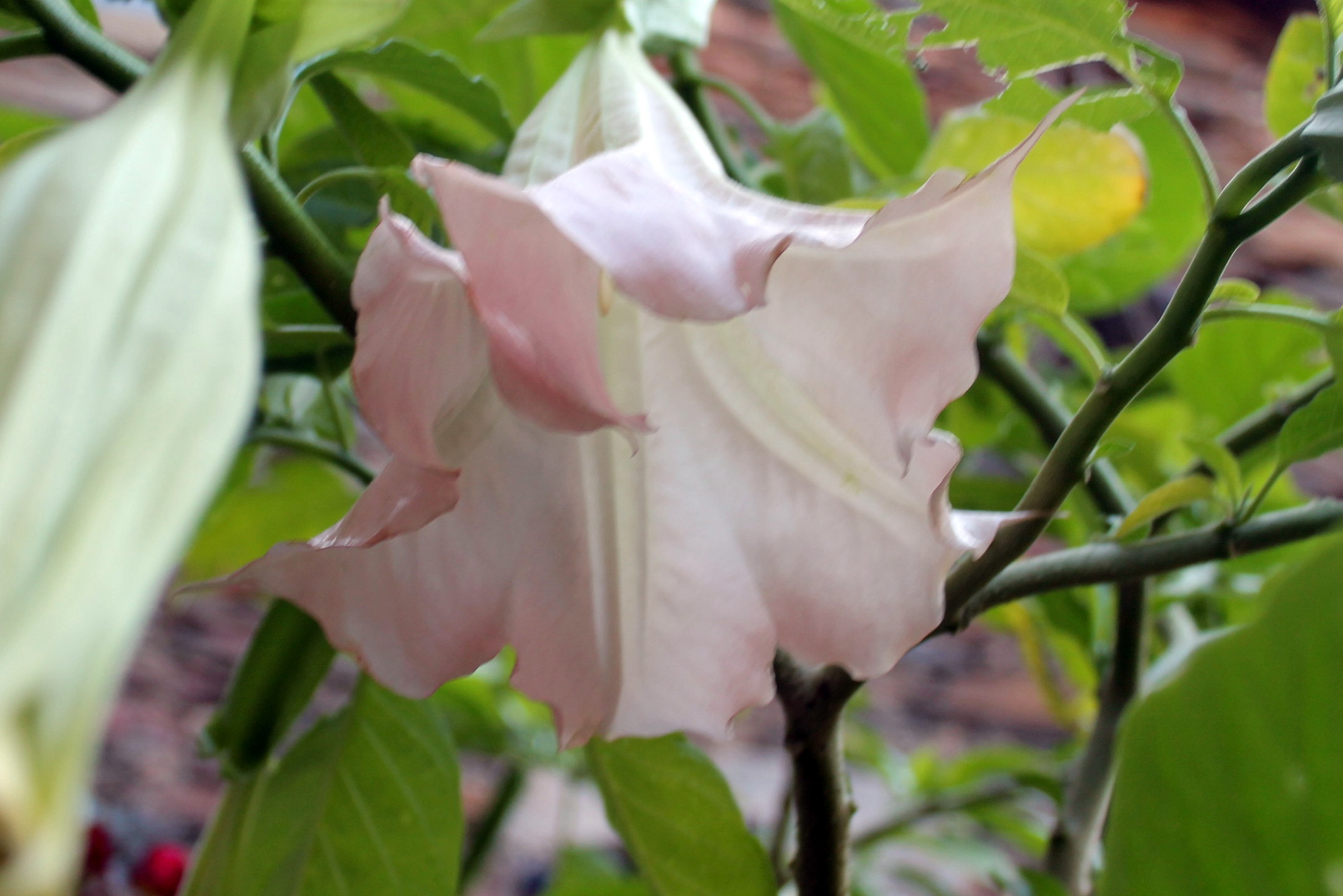 PS - Miracle ! La pluie tarie, le vent tombé, enfin une fleur de Brug qui tient.