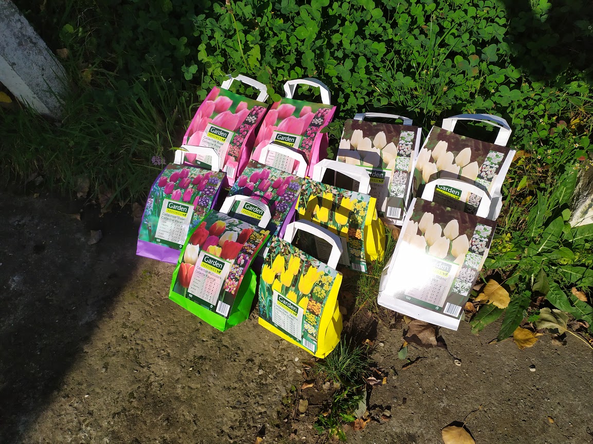 Dans l'espoir d'apporter de la couleur printanière, et comme il y avait une promo sur les bulbes, je me suis procurée 1000 bulbes de diverses variétés :