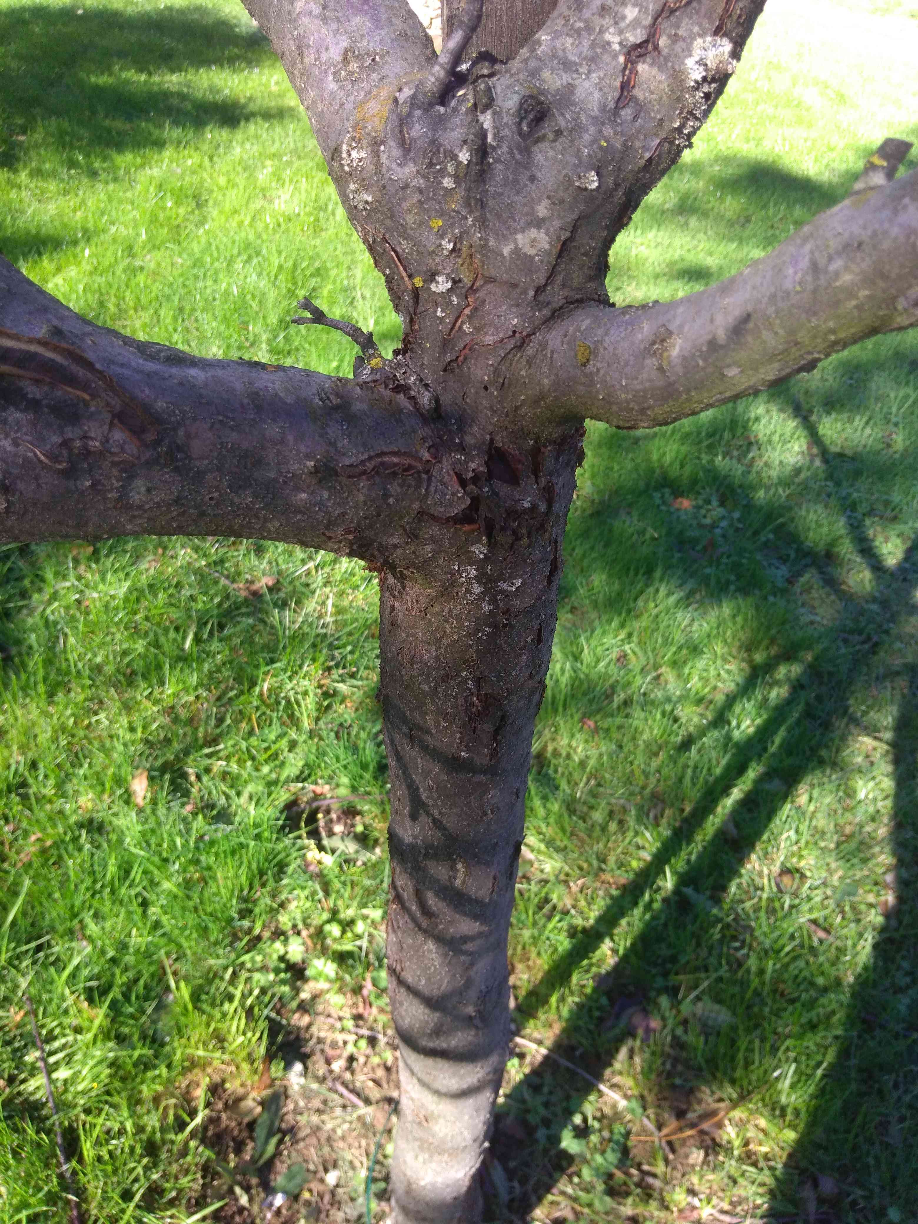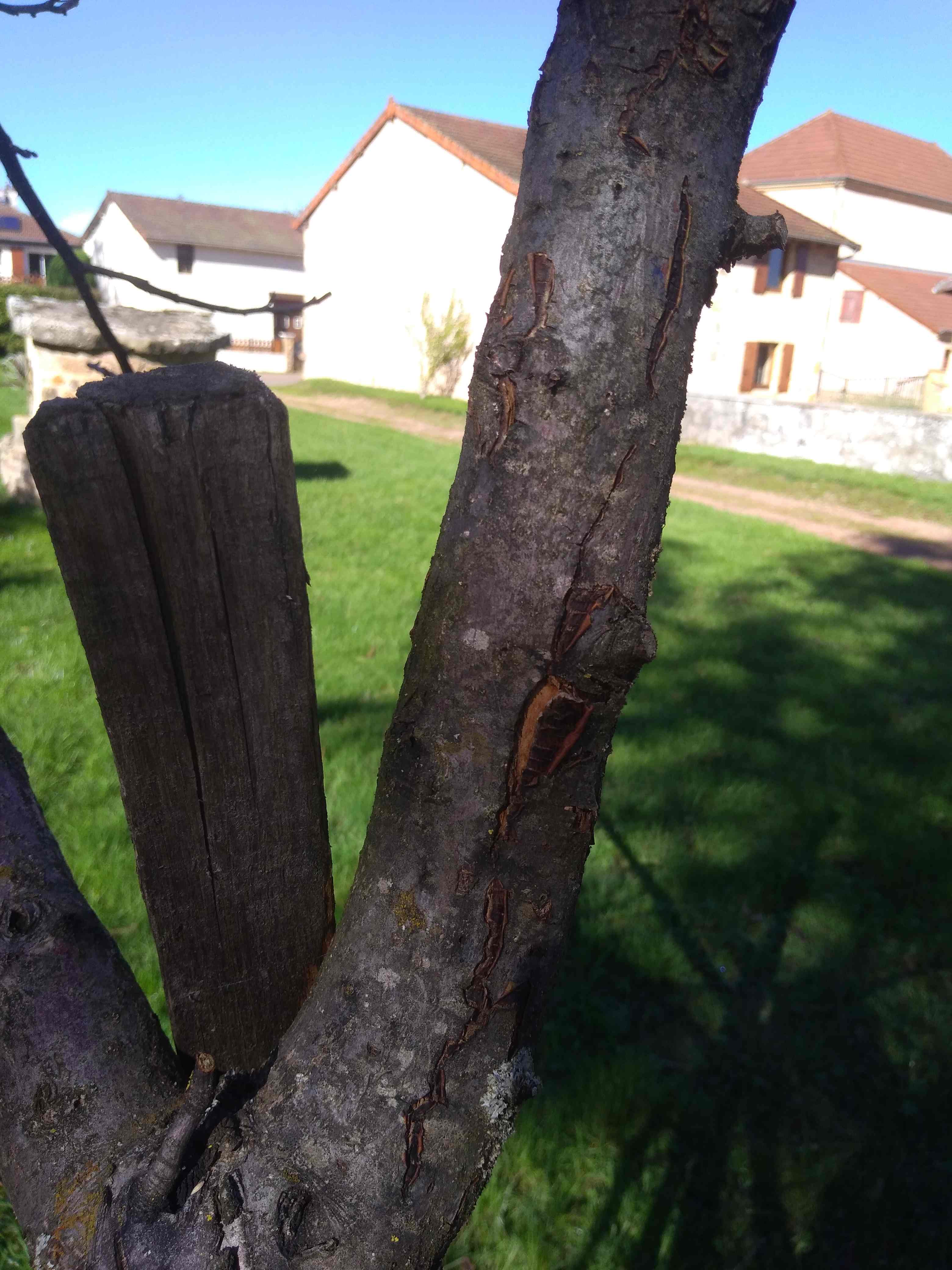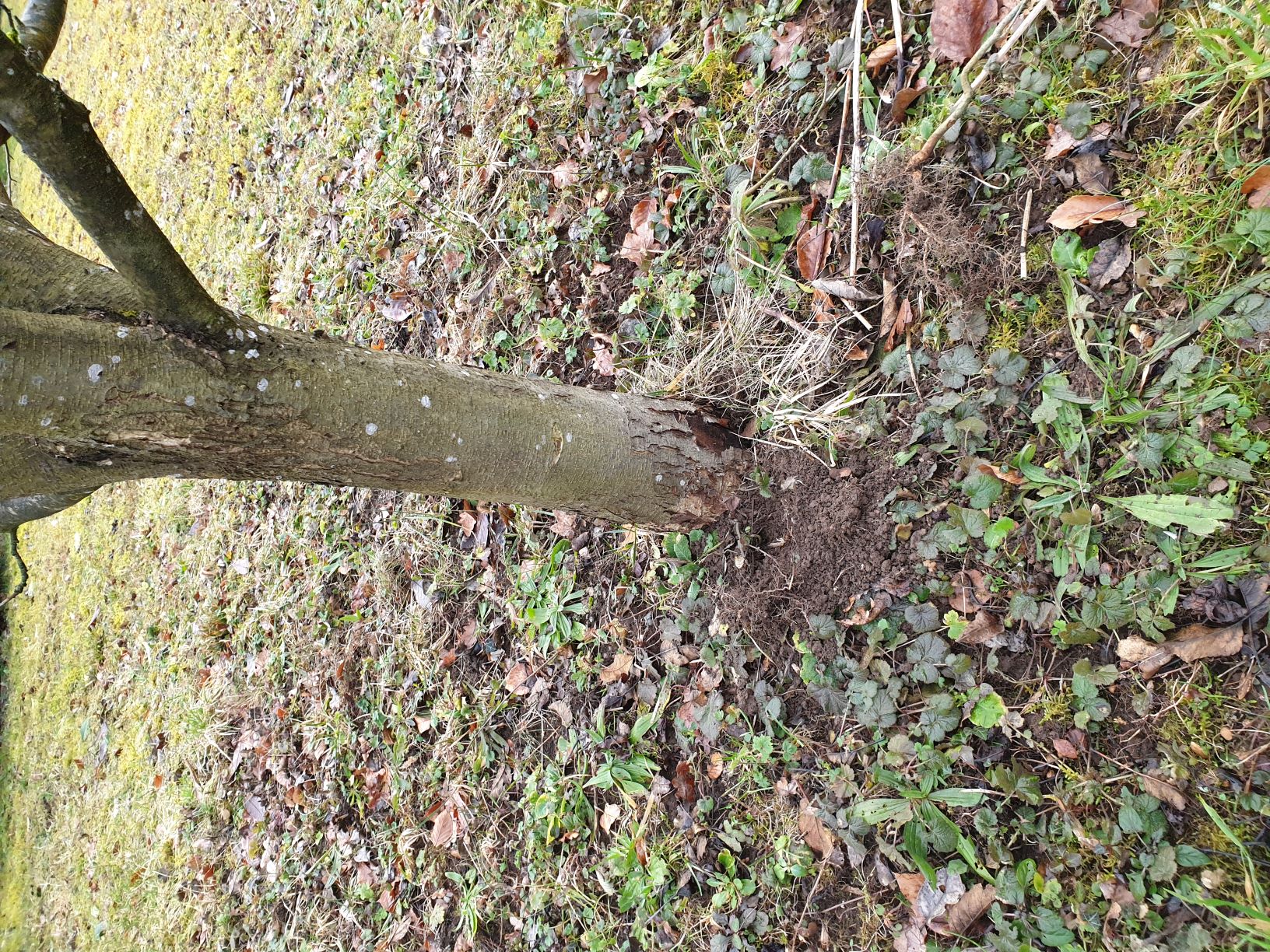 J'ai traité mon arbre. Et en le faisant j'ai eu des soupçons sur l'origine des blessures au collet de mon arbre.
