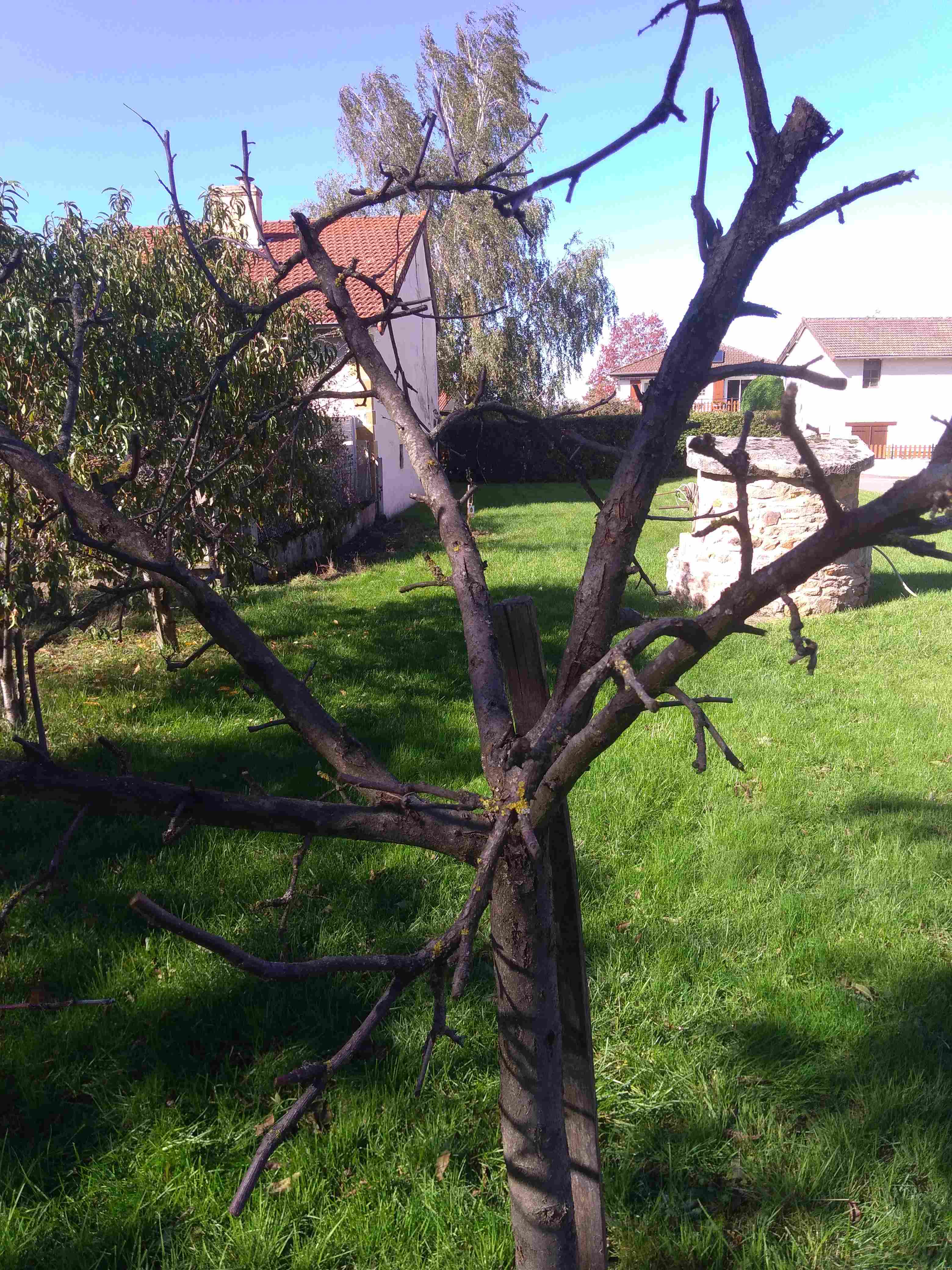 J'ai aussi eu un noyer et un abricotier qui ont clamsé en 2004 d'une façon semblable (quoique le noyer n'a pas fait du tout de feuilles de l'année), mais là il s'agissait manifestement de l'effet de la sécheresse de 2003 ; en plus il s'agissait d'arbres plus jeunes (2 à 4 ans). Ici, un pommier de 10 ans, ça paraîtrait vraiment étonnant...