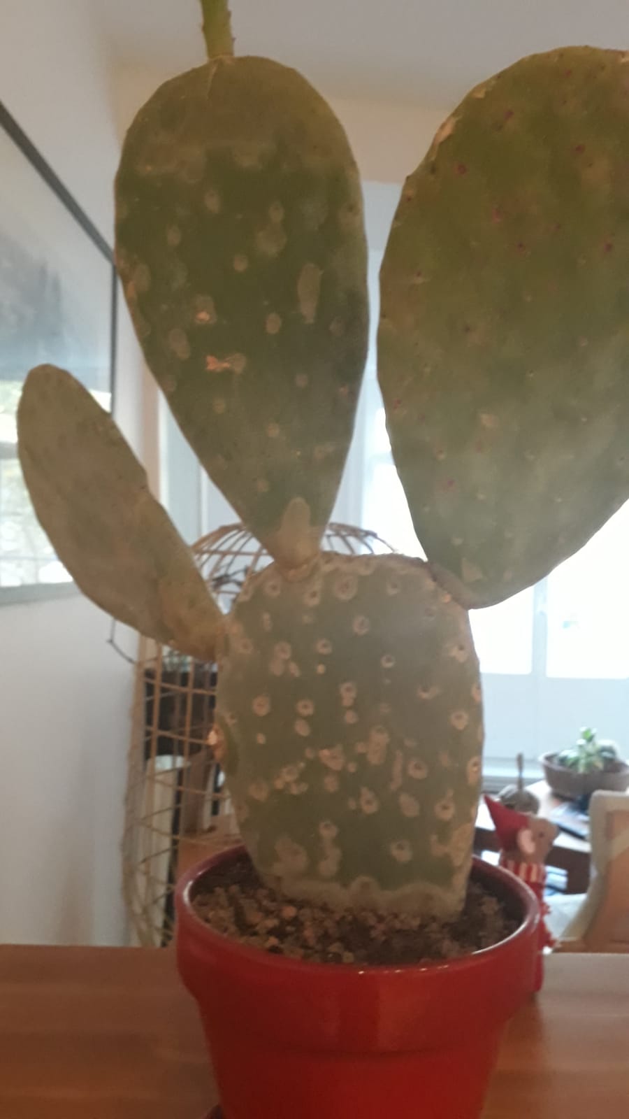 Je me demande si mon Opuntia souffre d'une maladie. Il présente des taches blanches comme le montrent les photos ?