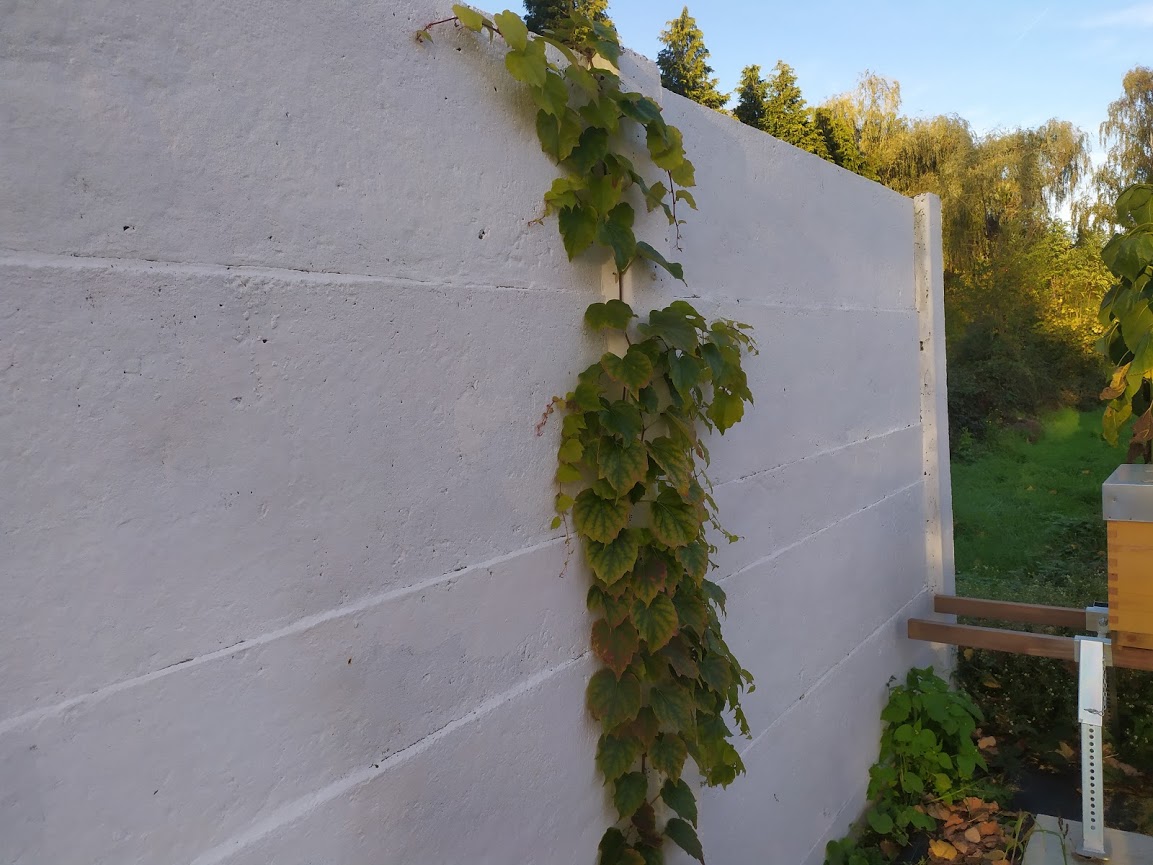 Merci pour vos conseils! Je n'avais pas pensé à la peinture. C'est une couche de primeur (je n'ai pas fait de couche supplémentaire, vu qu'il y allait avoir des plantes), mais maintenant que j'y pense, c'est effectivement une peinture qui "bouche les petits trous". Cela reste poreux visuellement, mais peut-être n'est-ce pas suffisant pour le lierre...