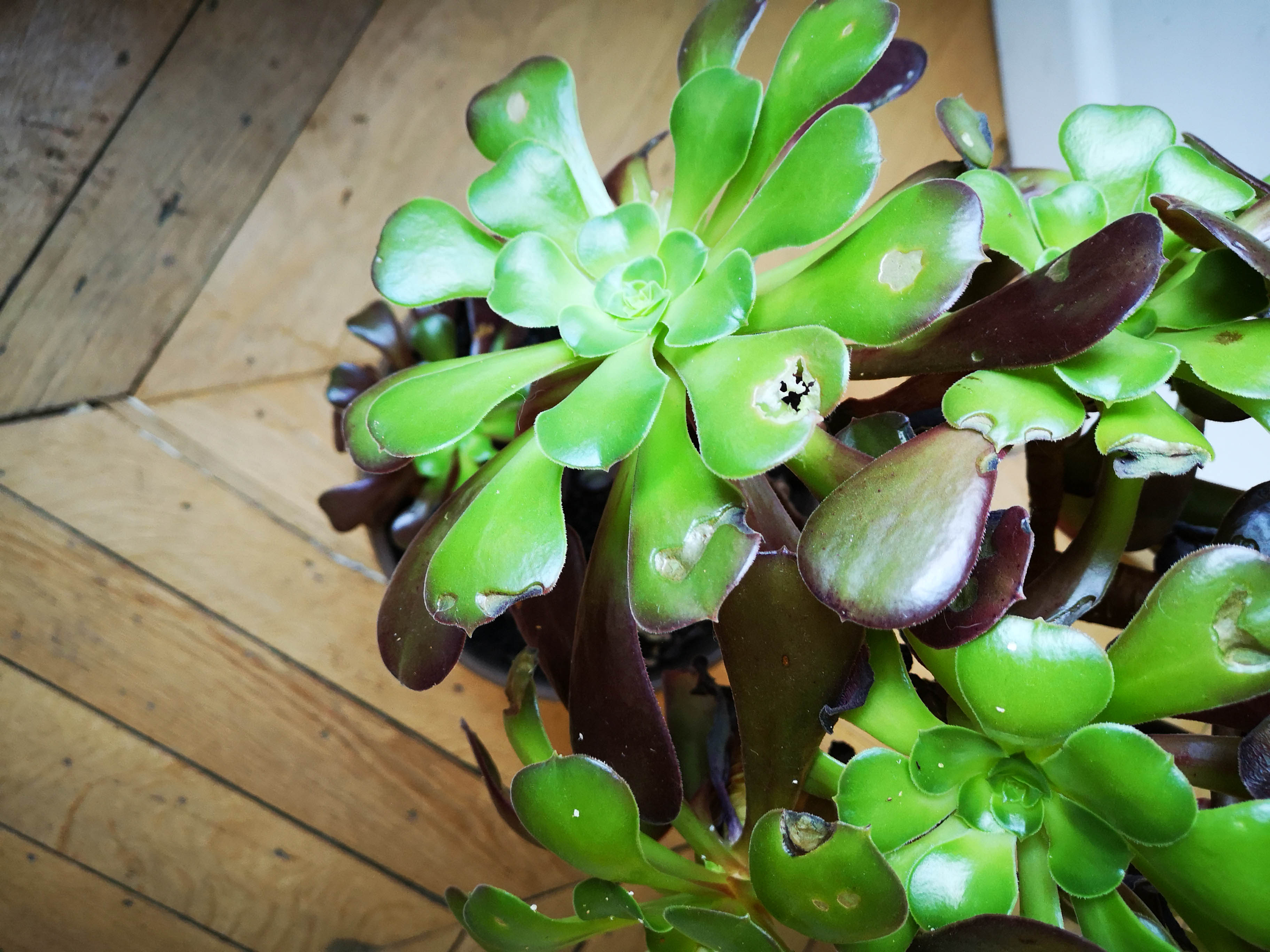 Notre aeonium ne se développe pas; les extrémités de feuilles s'assèchent et sont comme mangées par un animal invisible. De quoi peut-il s'agir ?