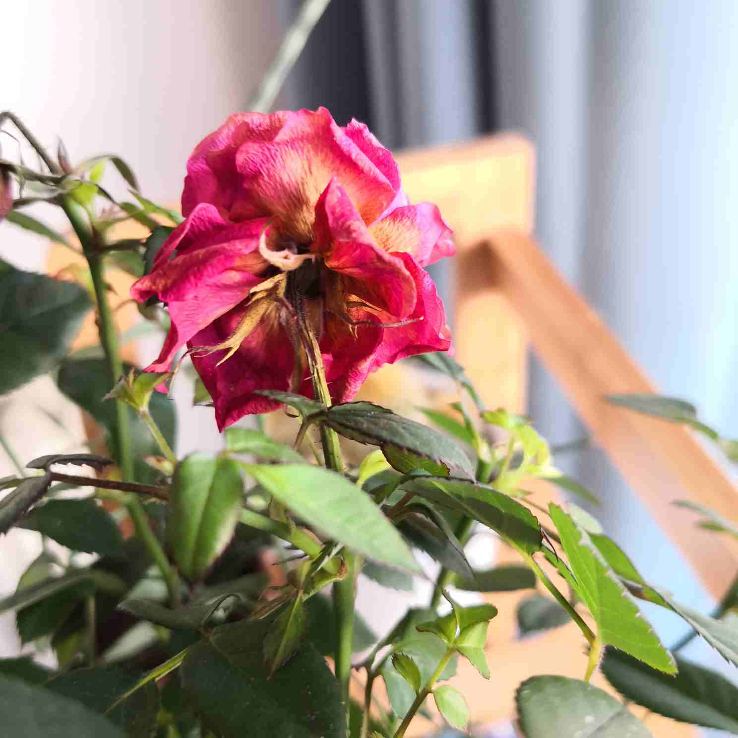 Un rosier n'est pas fait pour vivre en pot, Encore moins, à l'intérieur...