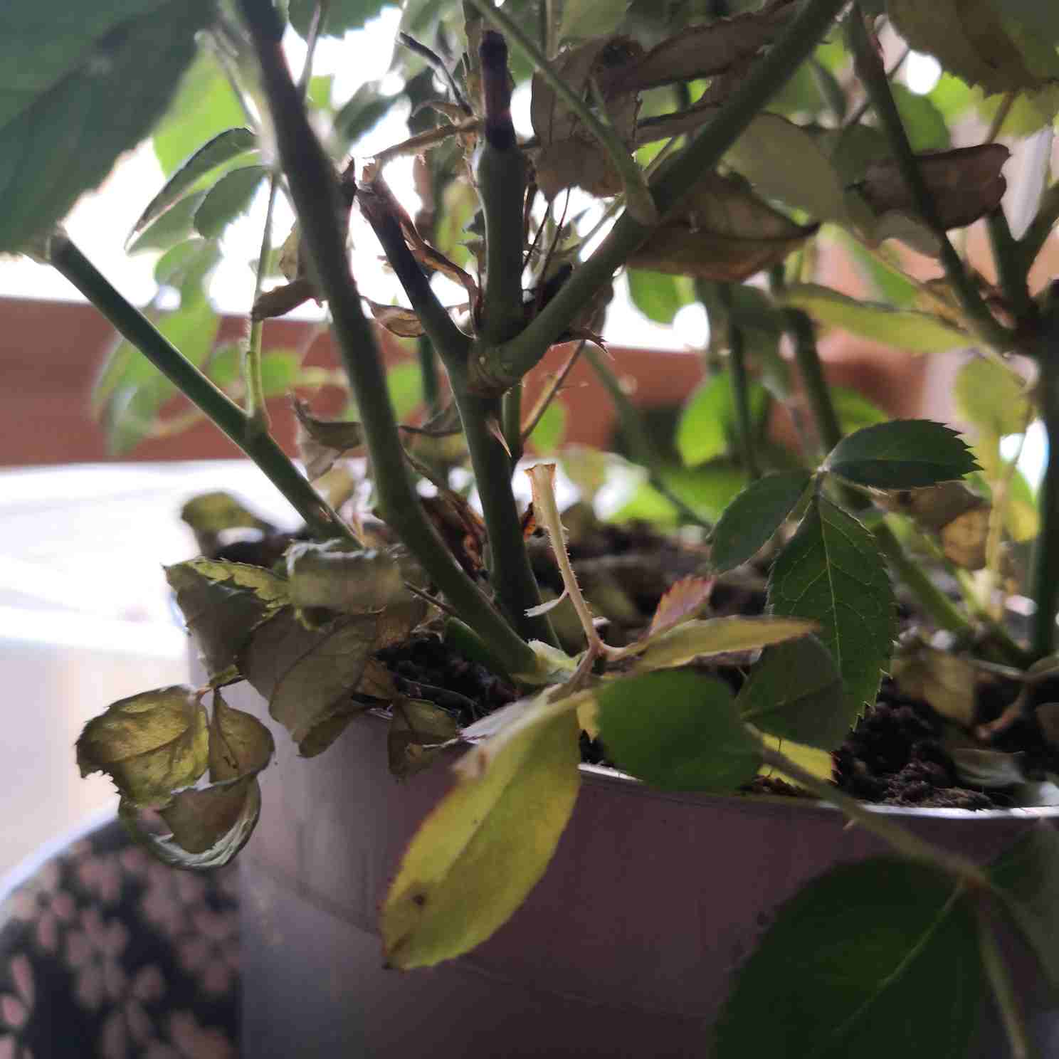 Un rosier n'est pas fait pour vivre en pot, Encore moins, à l'intérieur...