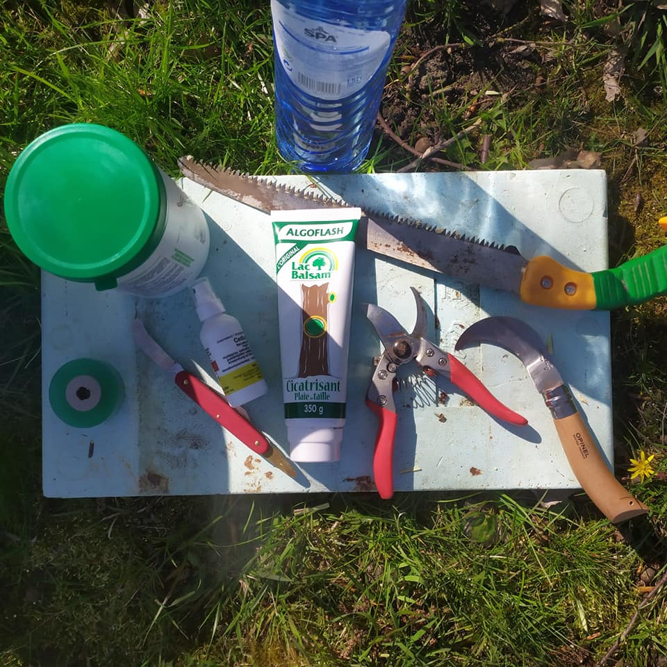Il s'agit de greffons de Reinette Evagil, Alkmène, Gueule de mouton, Reinette Dubois et Radoux en provenance du verger d'un ami.