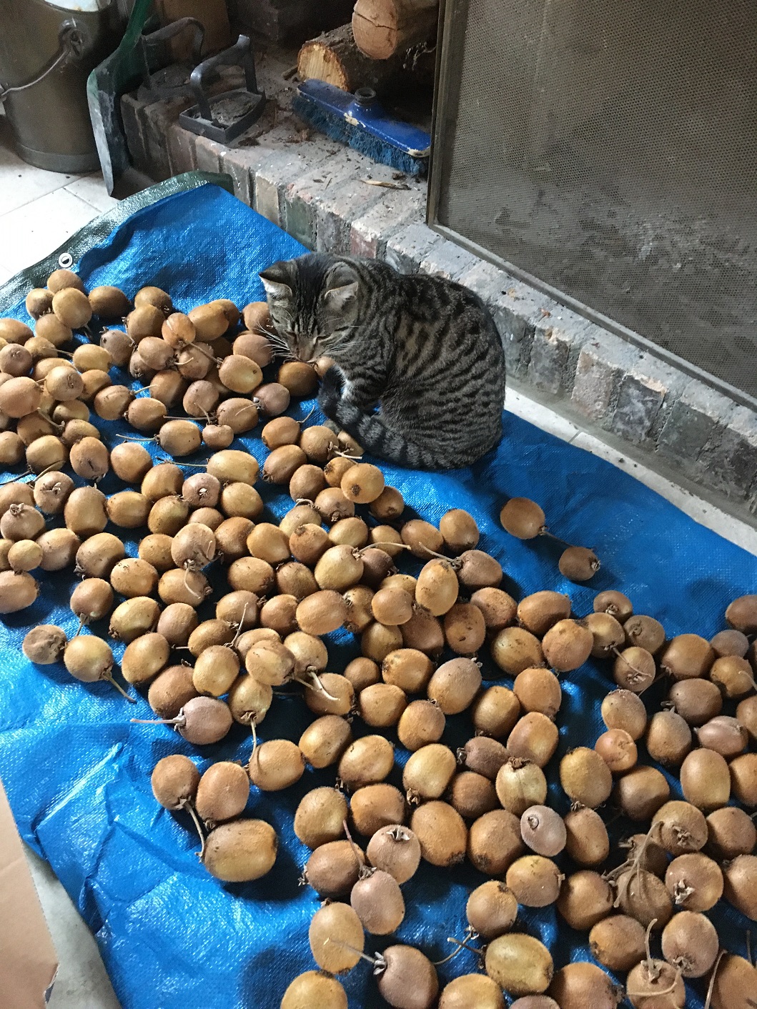 Cueillette de kiwis. 19 kilos cette année pour une seule femelle.