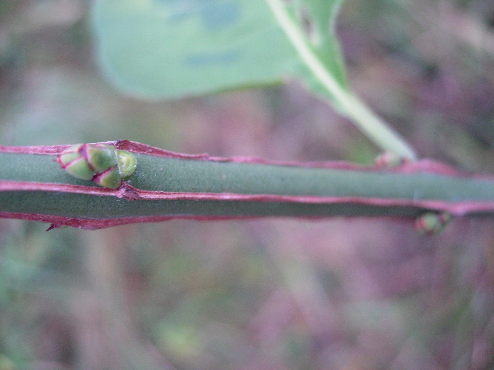 Le même arbuste, à tige de section polygonale dont les arêtes étaient soulignées de rouge,