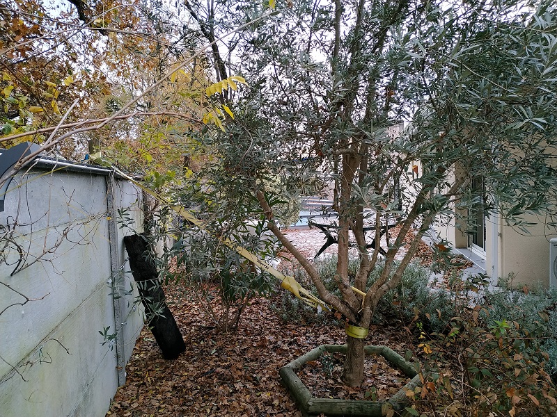 Exclusif ! un olivier maintenu en laisse...