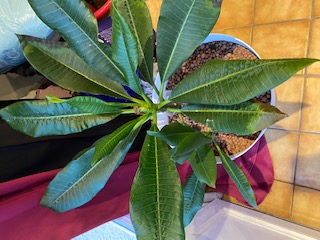 Le plumeria ne réclame que très peu d'eau en hiver. L'excès d'arrosage peut faire qu'il noircisse donc je pense qu'il faut réduire plus l'arrosage voire même ne plus l'arroser comme dit plus haut !