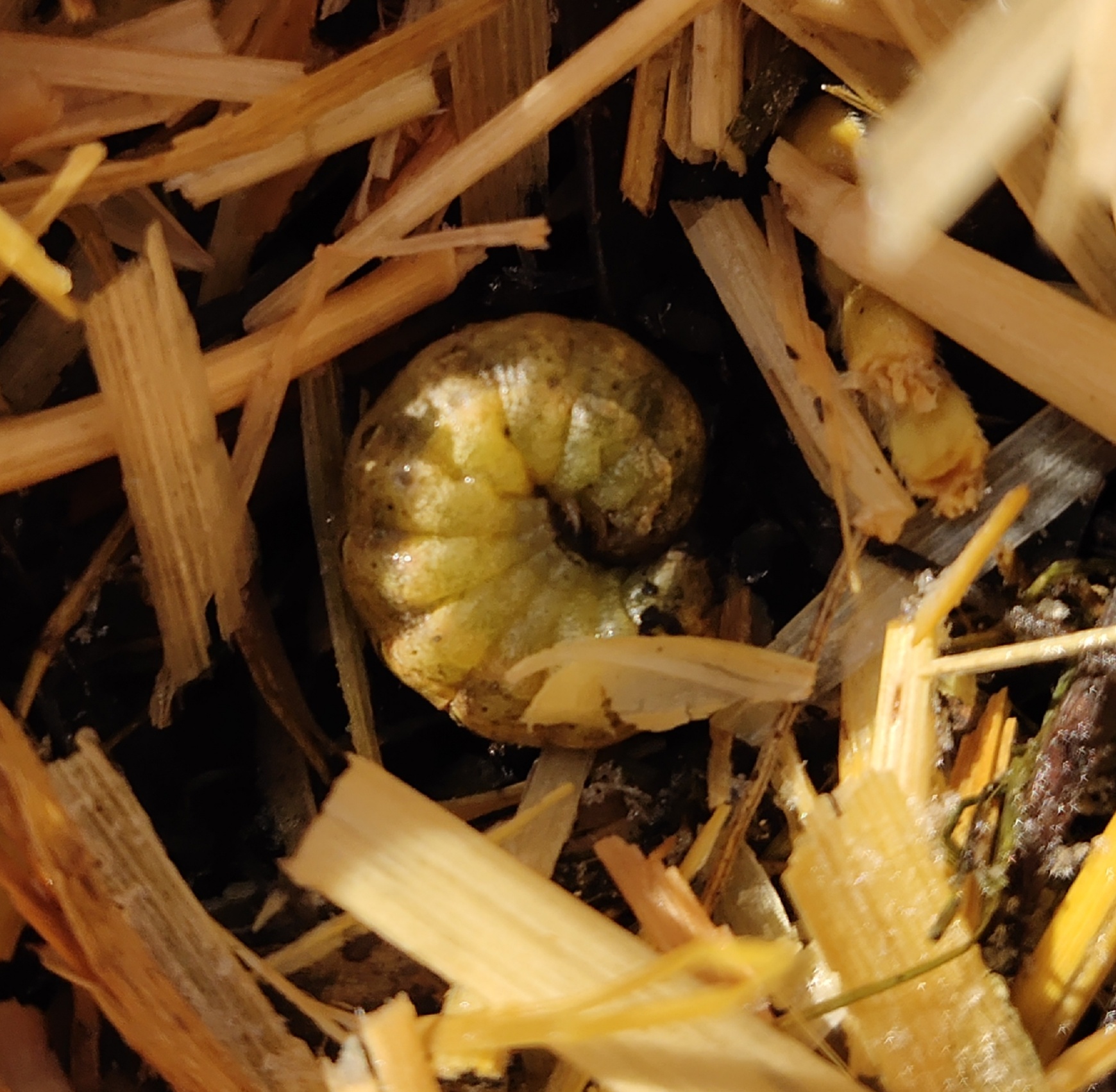 Mon potager n'a pour le moment aucune plantation mise à part des restes de l'année dernière en décomposition (radis carottes et poireaux) et un poirier en son centre mais j'ai trouver un vers/une larve qui m'inquiète dans le paillage, serait il possible de m'aider à l'identifier ? Voici une photo: Merci d'avance et bonne journée