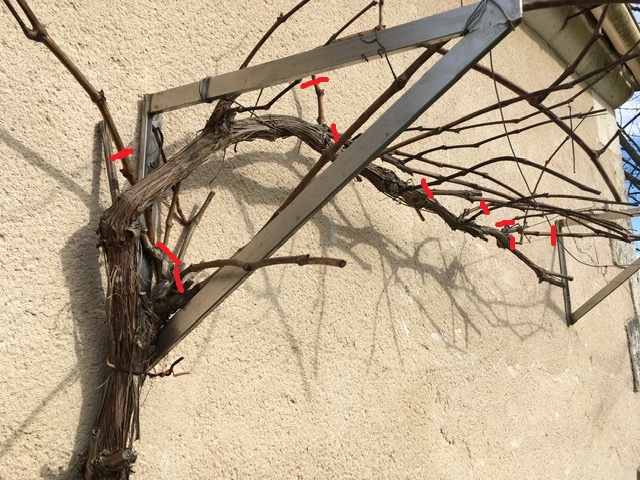 ), il faut que tu taille à coursons sur les deux baguettes laissées l'an dernier.