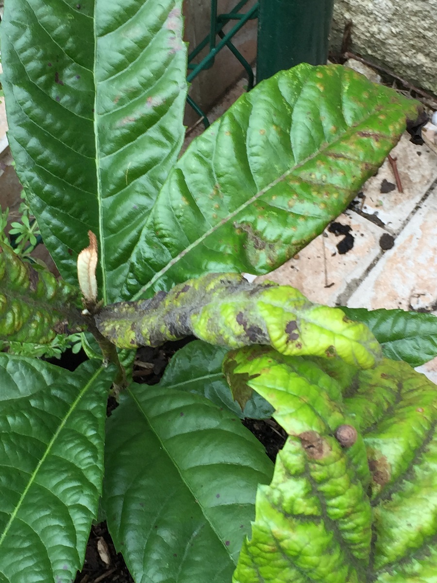 Qu'est-ce que cette maladie fongique visible sur les feuilles de mes très jeunes plants de Néfliers du japon (semi 2018) ? C'est juste incroyable mais ce fruitier n'est jamais indemne de cette fichue tavelure !!!! C'est arrivé cet hiver vers la mi- janvier. Et du coup, que faire ? BB ? Voyez par vous même.