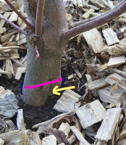 Ceci dit, la greffe de ton Acer est trop près du sol. Le bas de la dépression est enterré. Tu devrais enlever un peu de substrat pour que la greffe soit TOUJOURS entièrement sèche .