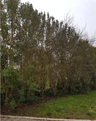 J'ai racheté une maison en charente Maritime ( dans les terres, à une vingtaine de kilomètre de l'Océan ), et j'ai une haie qui me semble un peu "tristounette"... les arbres montent environ à 5 m de haut, avec un feuillage persistant.