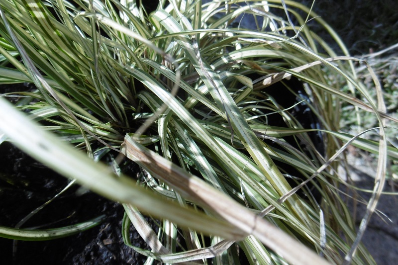 tu veux dire Hakonechloa ? Non certainement pas , déjà , ce serait un miracle dans un pot de cimetière , et les feuilles sont souples et retombantes et plus larges à la base et en pointes effilées , avec des nuances plus colorées