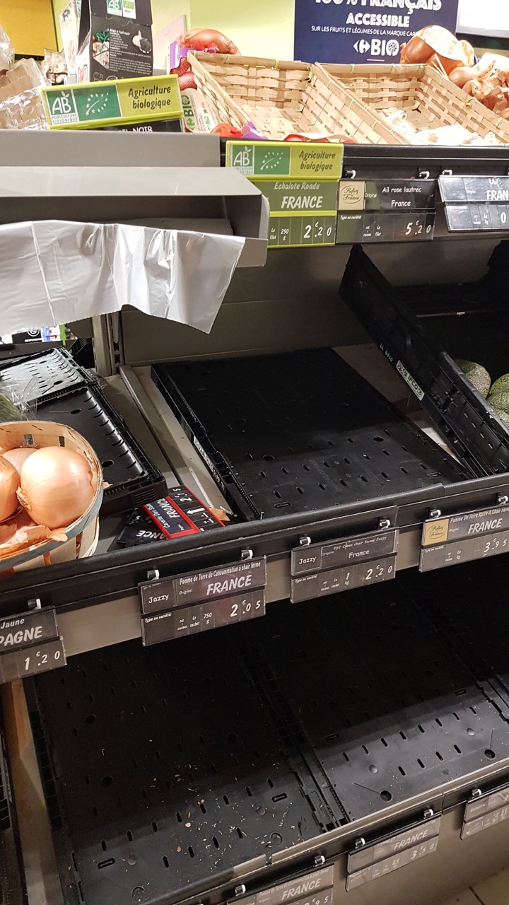 Sinon, samedi les rayons étaient pleins mais dimanche matin... VIDES ! (Ils ont dû venir d'Avignon ou Marseille en camion !).