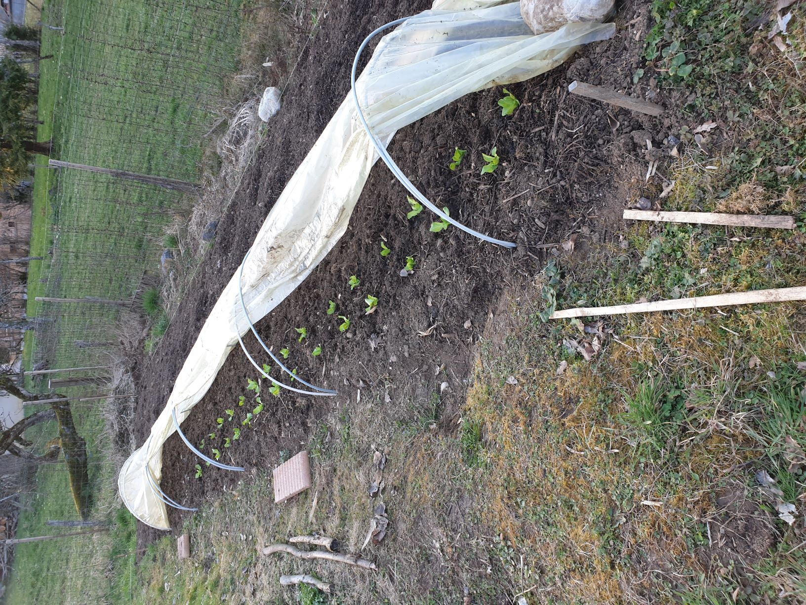 Sous le tunnel, j'ai semé un rang de carotte+ radis et un rang de betterave rouge (merci Cristina!)