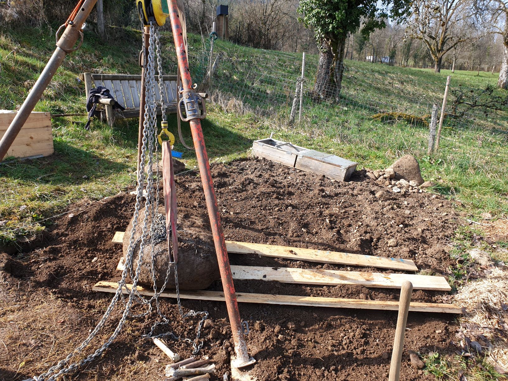 Utiliser un palan pour enlever les grosses pierres, voilà une idée que je retiens.