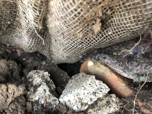 Je ne sais pas du tout ce que c’est.. il y a plein de cailloux en dessous, j’ai l’impression qu’ils ont essayé de boucher un trou mais dans ce cas là pourquoi faire un potager au dessus, du coup je ne sais pas si c’est une bonne idée de tout enlever...