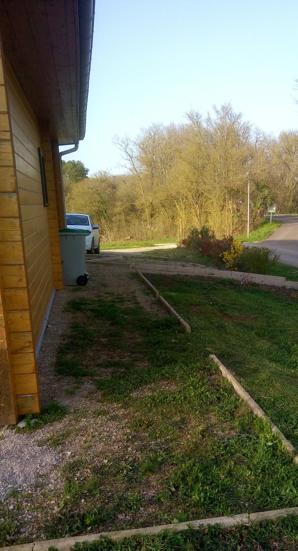 Il est actuellement entouré de mauvaises herbes, j'ai dû aujourd'hui passer la débroussailleuse. J'ai touché une branche que j'ai dû tailler dans la foulée.