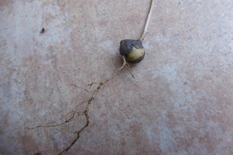 en rempotant un pied de canna resté au celier dans son pot avec sa terre , j'ai decouvert cette pousse que je