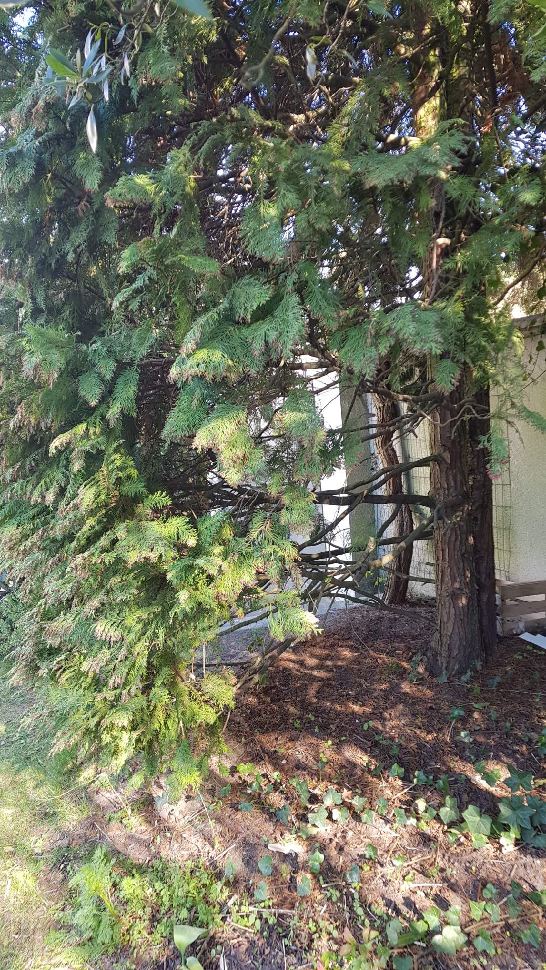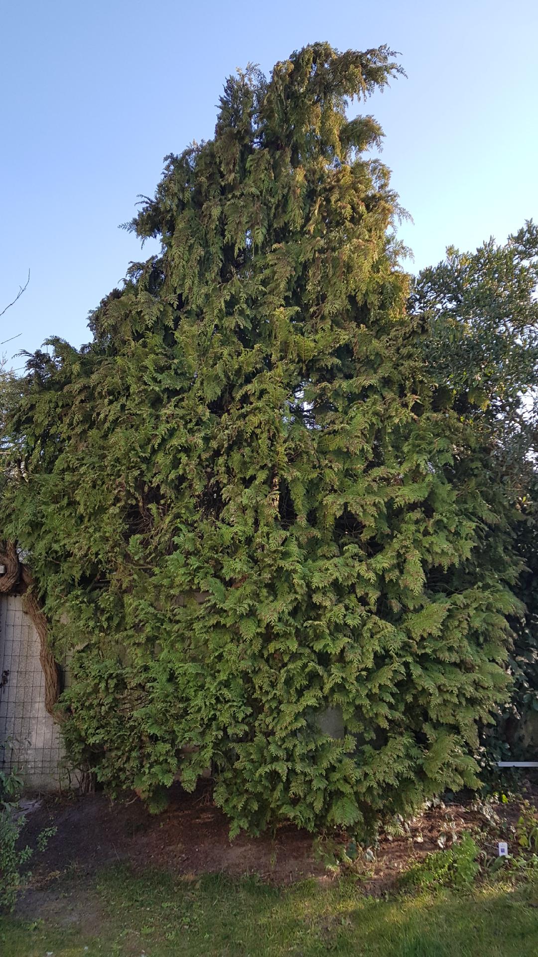 J'ai un très grand thuya de plus de 10m de haut et nous avons coupé toutes les branches basses afin de pouvoir circuler.