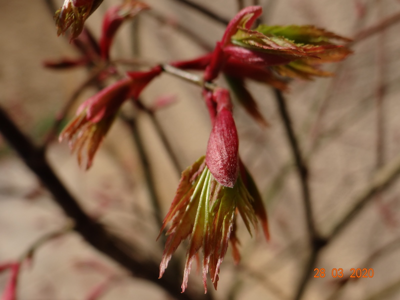 Ok, le mien débourre plutôt rouge pourpre verdâtre, comme son proche parent 'Toyama nishiki' (il en serait une mutation) avant de devenir rose blanc vert comme le tien. Il faudra faire une fiche sur ce cultivar avec toutes les infos disponibles… Selon certains avis, il y aurait 2 sélections, l'une "européenne" appelée 'hana matoi', très rouge rose comme le tien, et une autre "japonaise", avec des couleurs au débourrement comme le mien, une variété très proche de 'Toyama nishiki' ainsi que de 'goshiki shidare'... A voir si les coloris persistent dans le temps ou si les conditions de culture "régularisent" les couleurs entre nos deux sujets...sangokaku a écrit : dim. 29 mars 2020 21:59 Merci pour toutes ces belles photos. On a beau en avoir plein, chaque année on en mets de nouveau sur la liste.