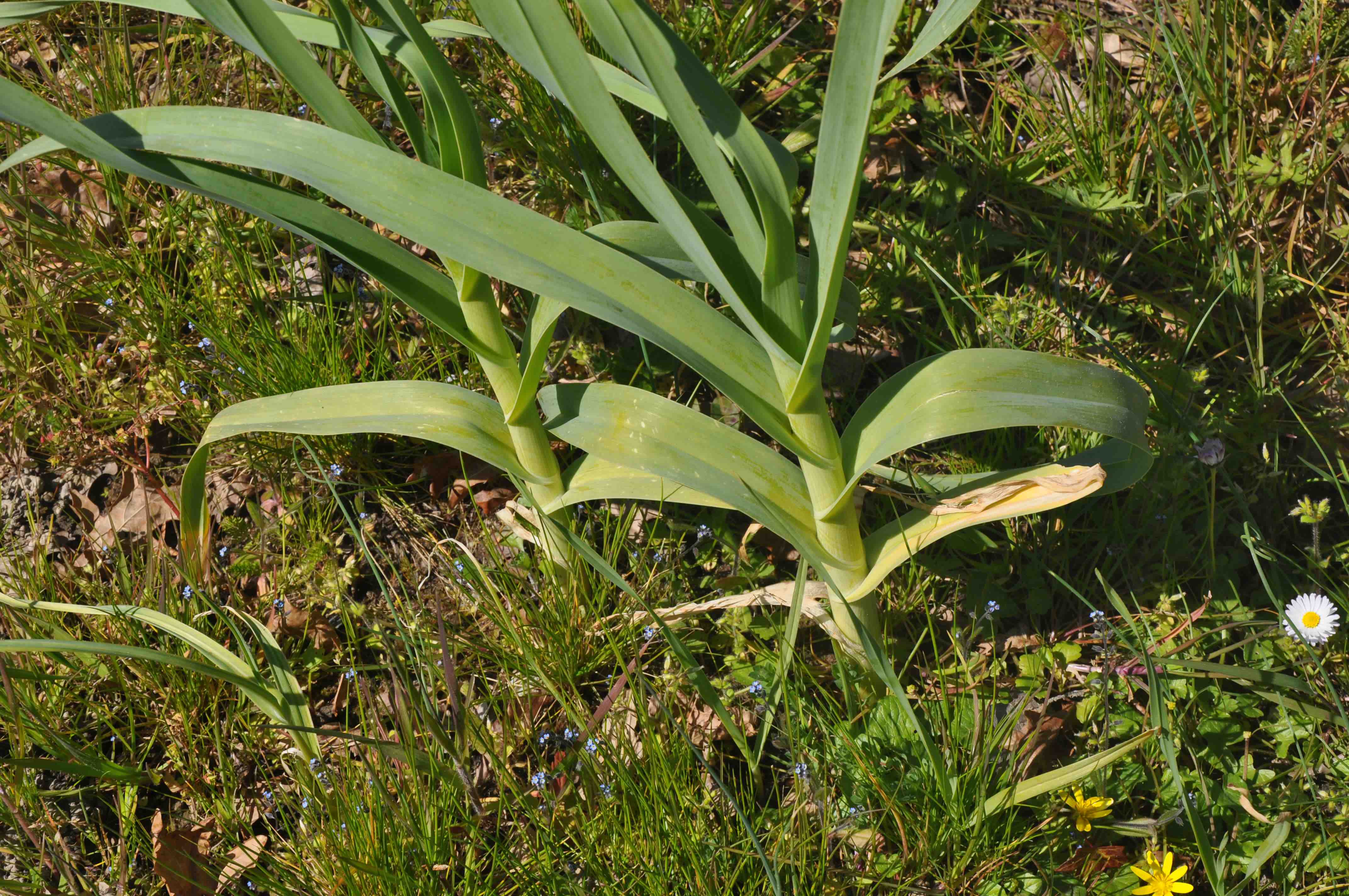 L'implantation des feuilles est typique du poireau.