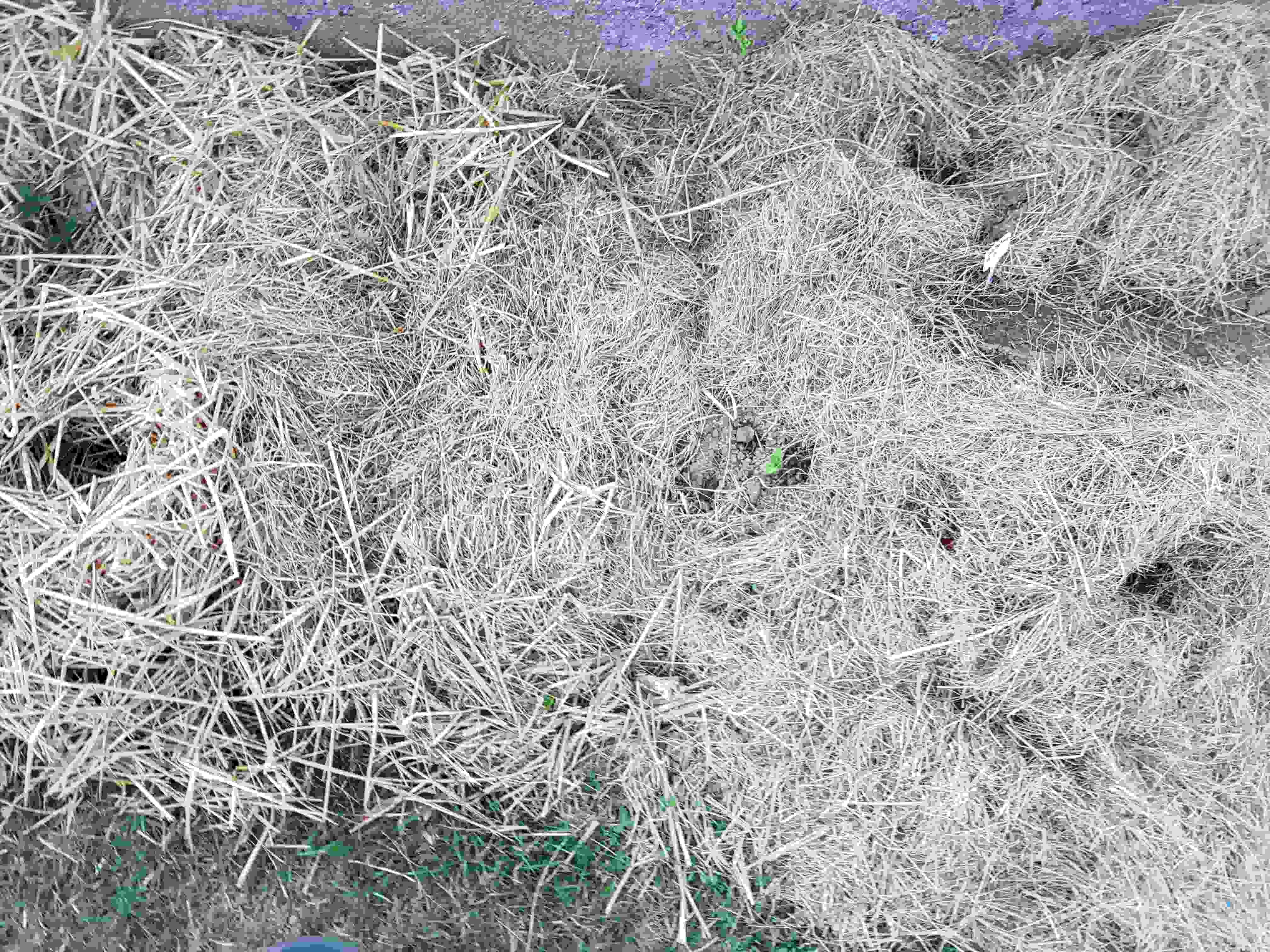 Tous les trous dans la paille ou le foin dont des ails oignons ou salade qui on été repiqué