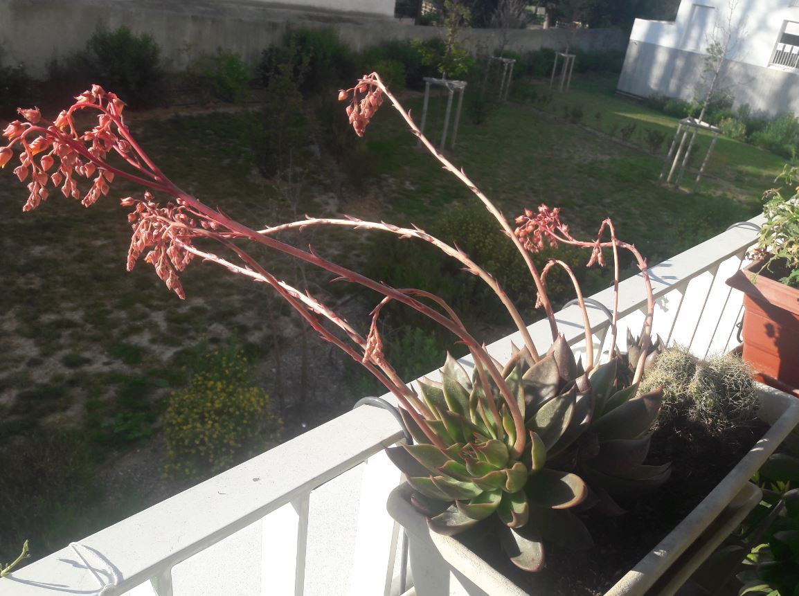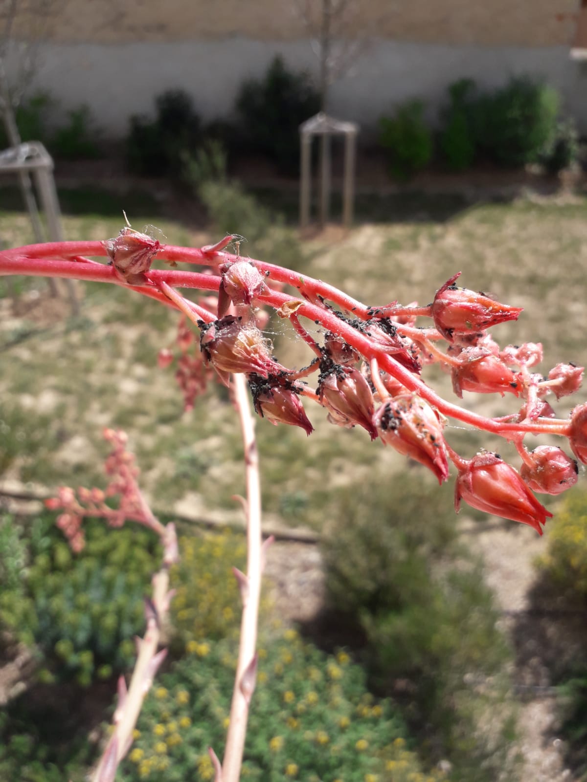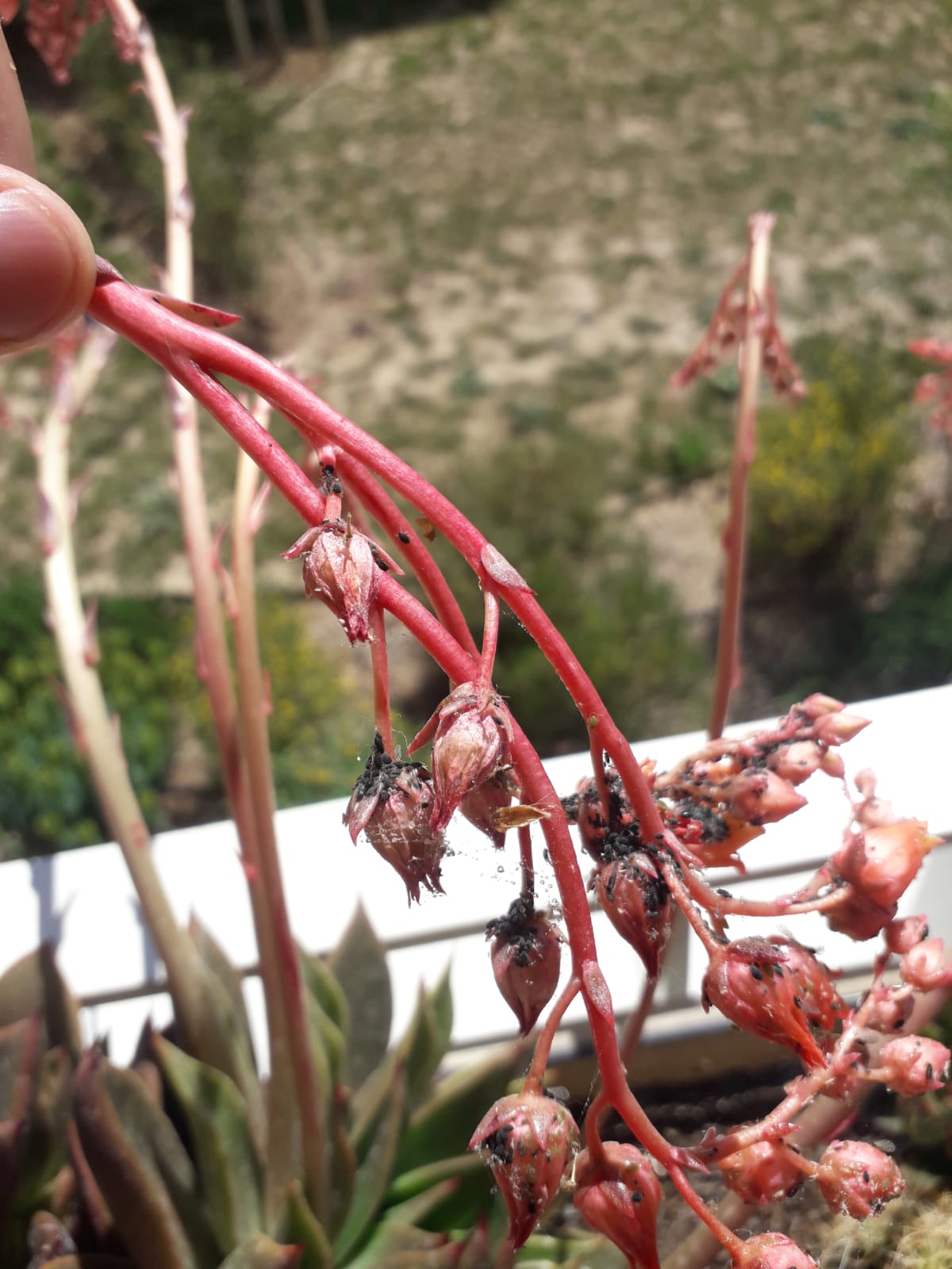 Des parasites se sont installés sur les fleurs/clochettes d'une pousse de ma succulente Echevaria :