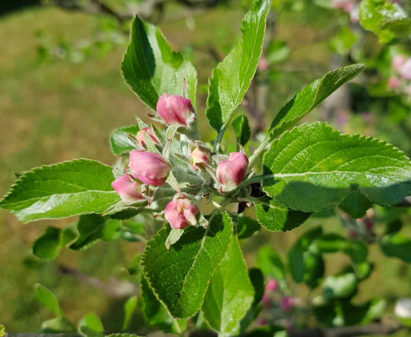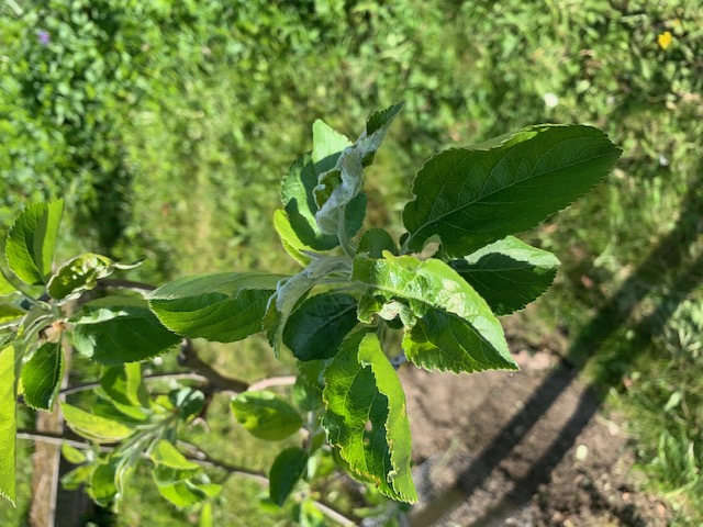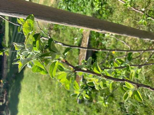 Tu ne vas pas avoir de fleurs cette année, à voir tes photos. Ce qui n'est pas un problème, car ça va laisser à ce jeune pommier le temps de se développer.