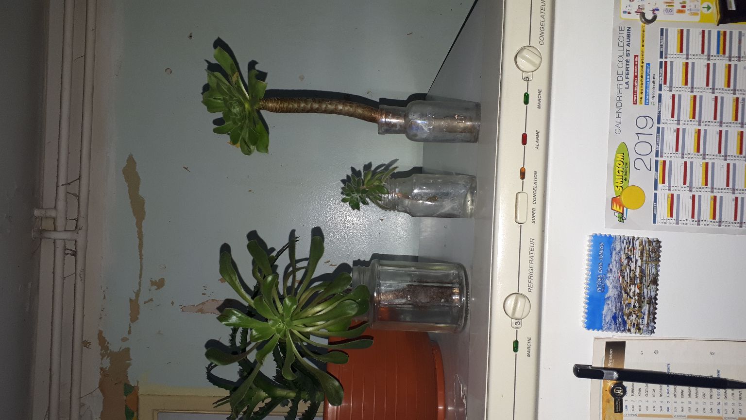 Attention à l'humidité dans les flacons, les boutures doivent être au sec le temps que la plaie de la coupure cicatrise.