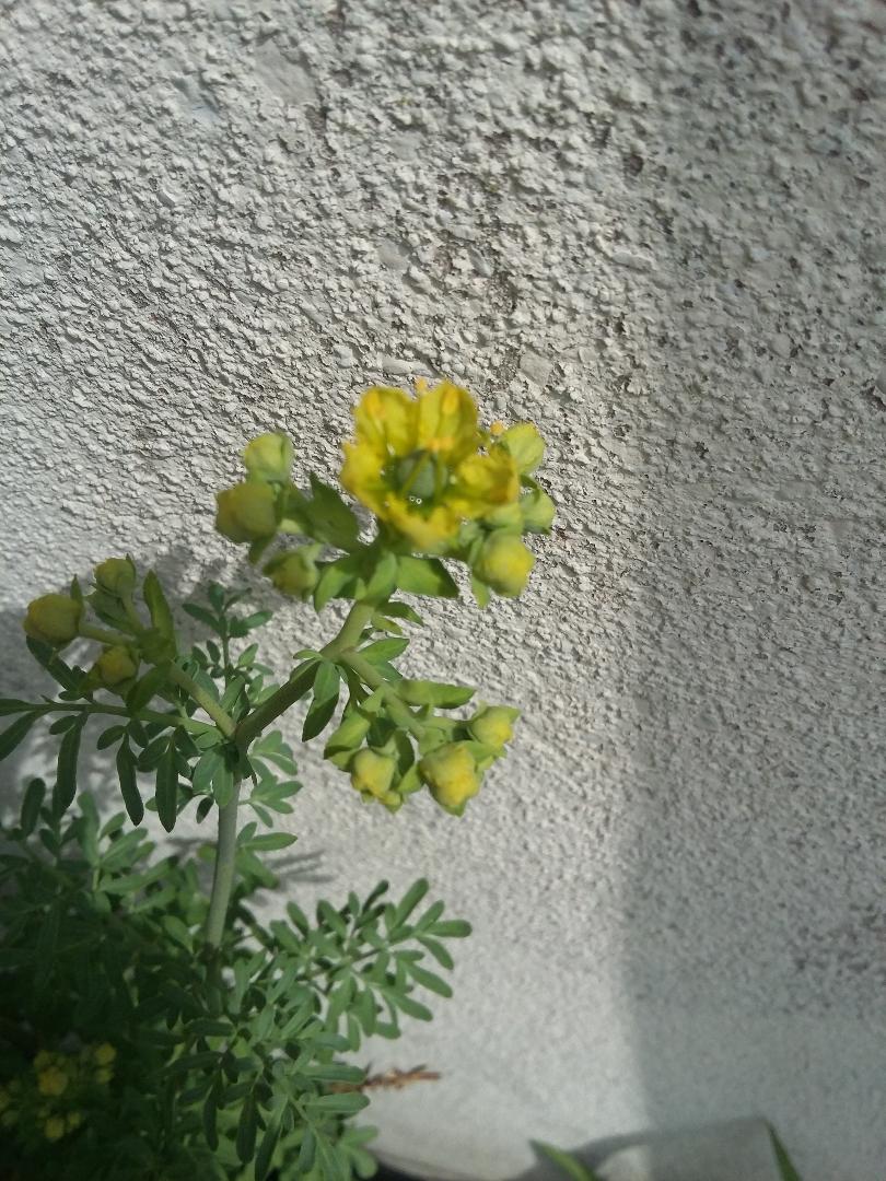 Je verrais bien Ruta graveolens, la rue officinale ou rue des jardins, famille des rutacées, avec son arôme fétide.