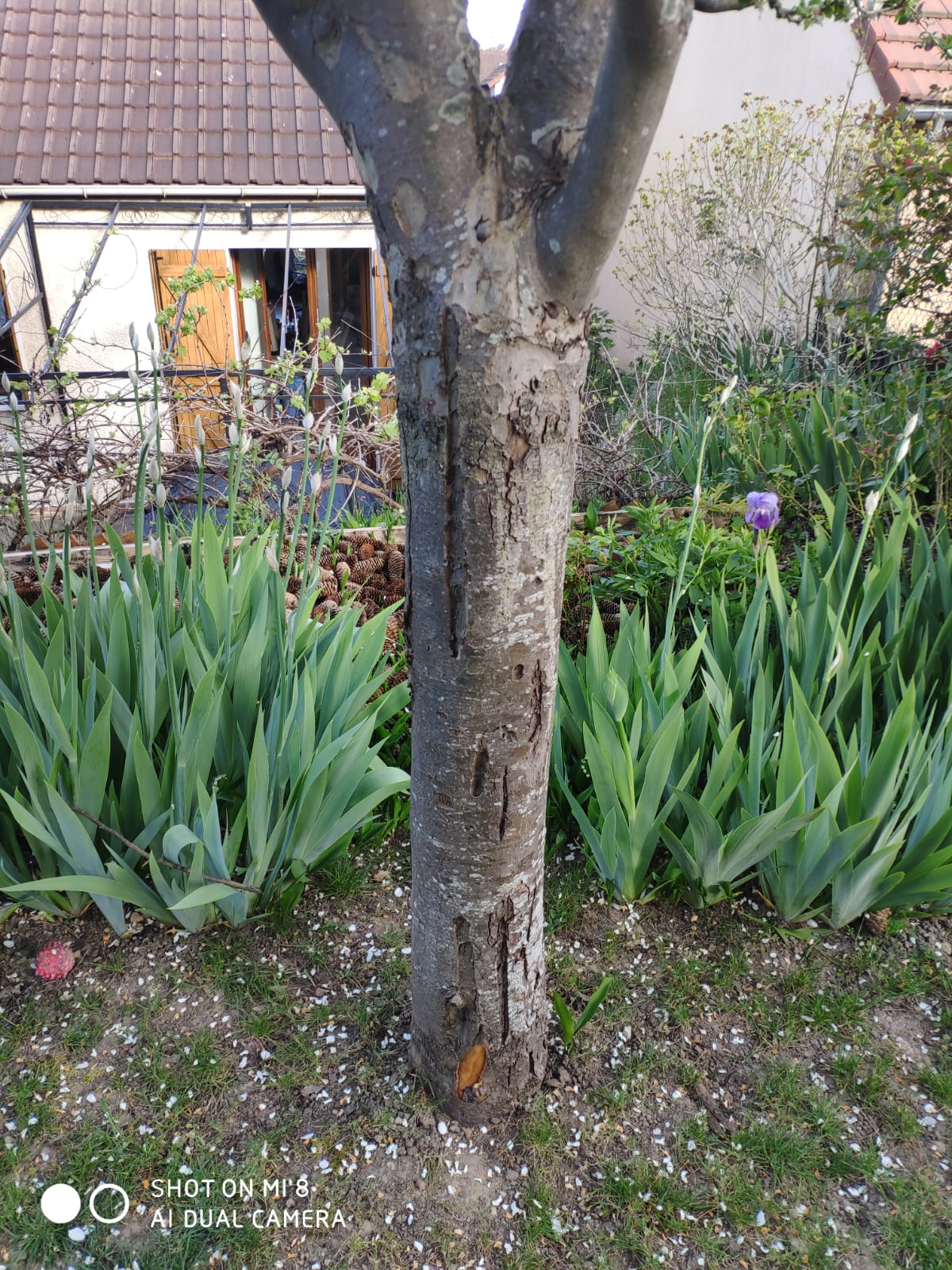 Bonjour, c'est assez curieux mais parfois visible sur certains arbres de ville ... Ça vient de l'intérieur, sous l'écorce, peut-être une infestation de bestioles ou un chancre. Ce qui est inquiétant ce n'est pas tant les stries verticales mais plutôt les endroits où l'écorce se décolle laissant apparaître des tissus secs. Ça ressemble en moins grave au cerisier de laura 2720 avec son énorme nécrose ? Sauvable ? Je dirais oui si on arrête les dégâts dès à présent.
