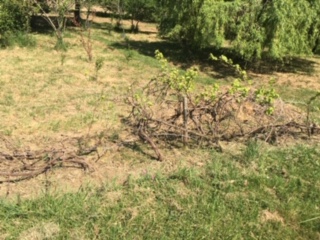 Les branches partent un peu dans tout les sens et certains pieds se sont couchés sur le sol mais il y a quand même quelques feuilles vertes qui poussent.