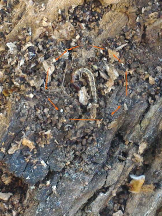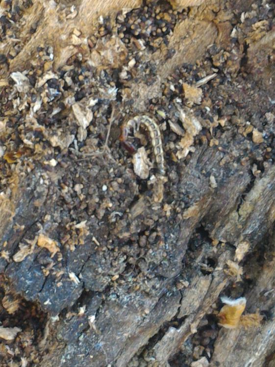 Lors du nettoyage de l'arbre avec une brosse avant de badigeonner le tronc à la chaux, j'ai pu apercevoir quelques une de ces chenilles identifiées par Voisine, peut-être 4 ou 5 au maximum, qui se faufilaient dans les galeries.