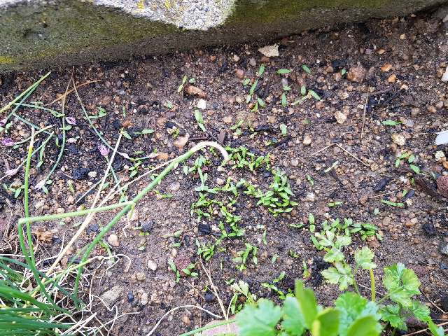 Le percils plat de l an dernier est monter et prépare ses graines Le percils frisée semé est sortie Les radis pousse j en mangerai peut-être dimanche Les salades dans le part terre au sud se porte bien aussi Les petites salades en godets on bien grandis si il ne pleut pas je vais depailler la planche du fond arracher et déraciner au mieu les ortie et chardons et a mon grand regret mettre une bâche plastique pour cette saison juste faire les trous au endroit ou je mettrai les tomates et autre plant pour que ces herbes envahissante meur dessous Le laurier sauce a repris je pense vu les petites feuille plus Claire qui pousse et va grandir j espere Les oignons rouge