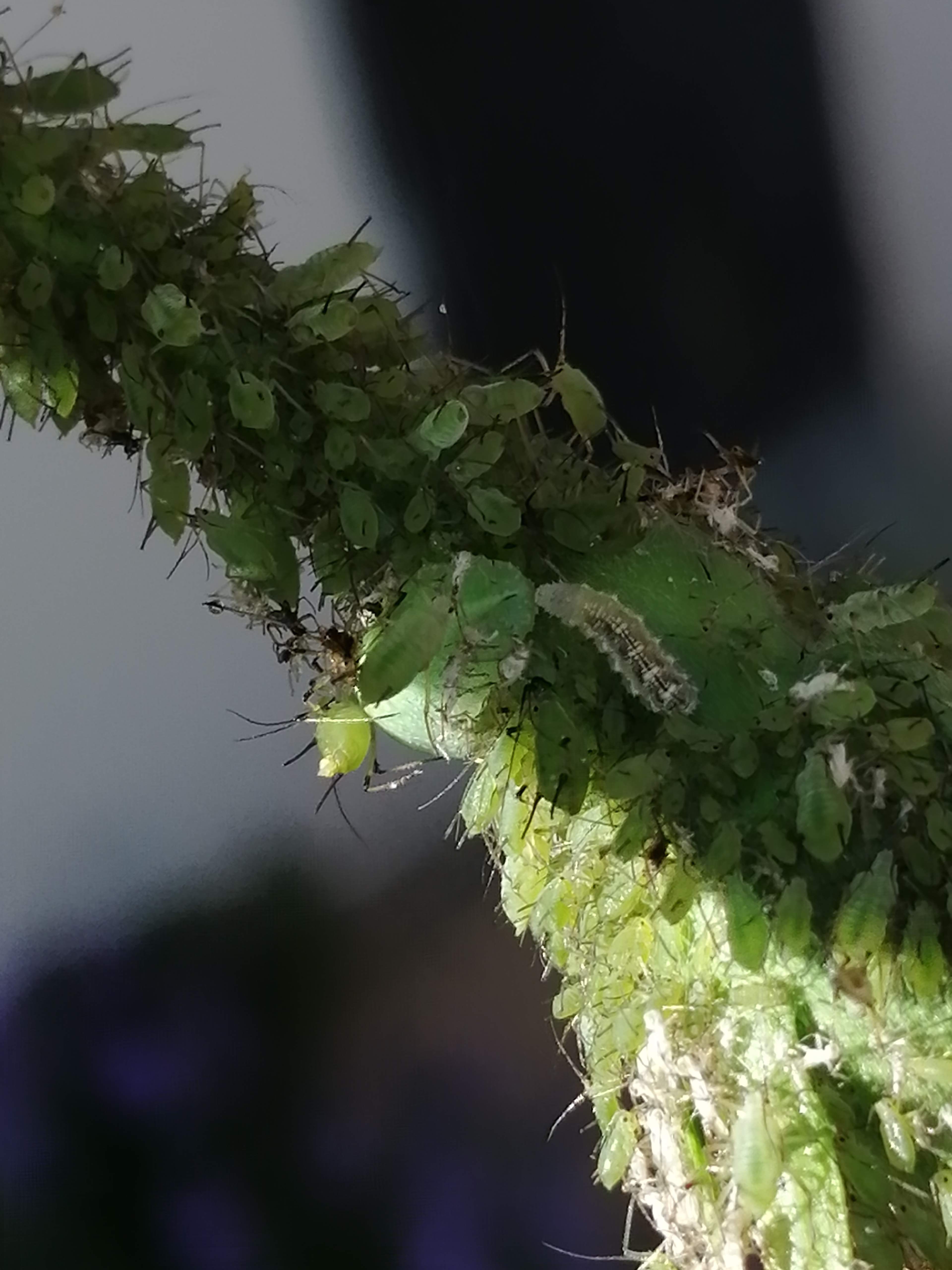 Si ça peut aider l'analyse, la larve vient d'une "coque" aussi verte que le puceron !