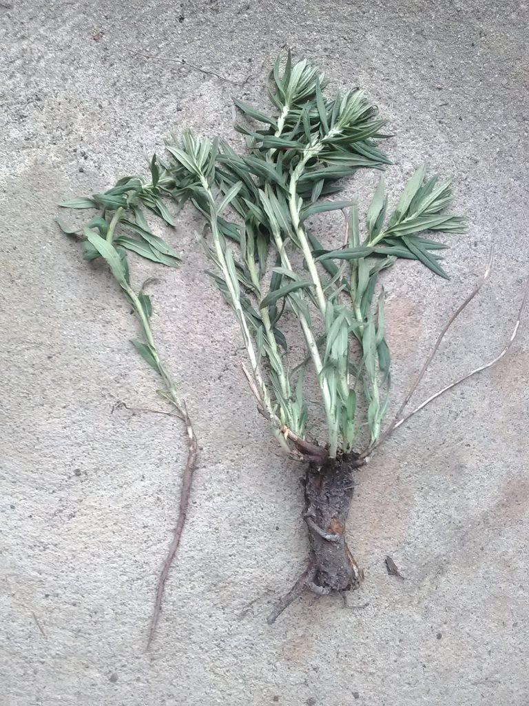 Cette plante-ci présente une seule tige. J'ai tout arraché avant-hier (aucune odeur d'estragon), j'ai pris une photo où l'on constate que certains pieds sont issus d'une énorme racine souterraine (en place depuis au moins un an, avec arrachage inefficace l'an dernier), et d'autres sont de petits pieds tout jeunes et individualisés (issus de graines ?). Voir ci-dessous.