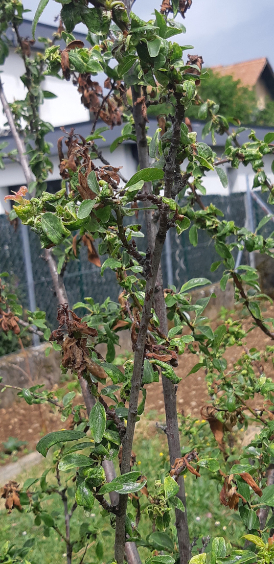 le mirabellier de mes parents avait les mêmes symptômes, mais je ne voyais pas d'insectes. J'ai traité au savon noir pensant aux pucerons mais depuis les feuilles sèchent de partout (surtout au bout des branches) et j'ai trouvé des chenilles.