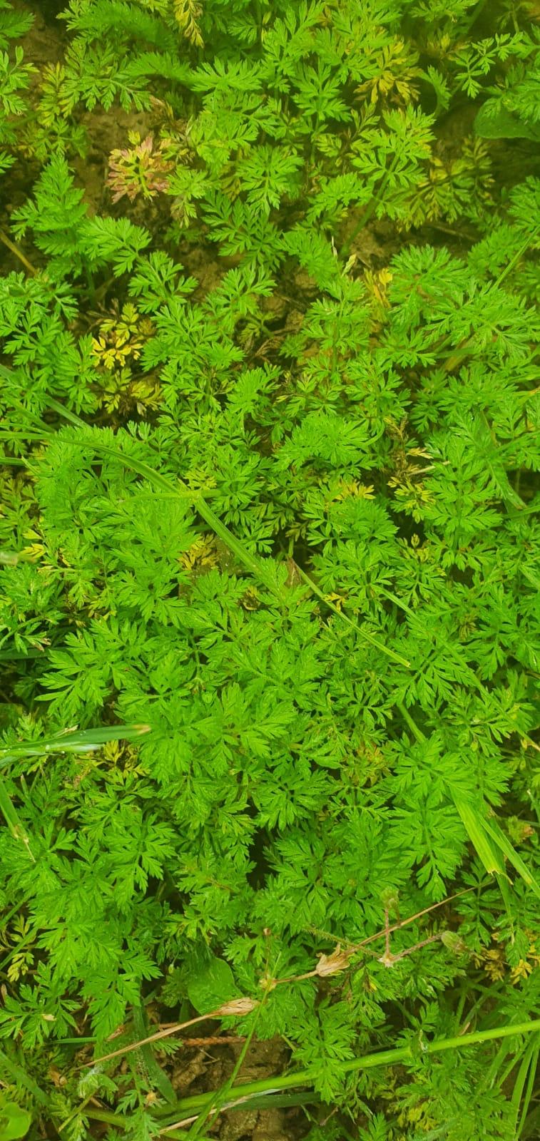 Je vois deux au moins deux espèces, une avec des feuilles découpées type astéracées ou apiacées, je pencherais pour la petite ciguë ou un géranium.