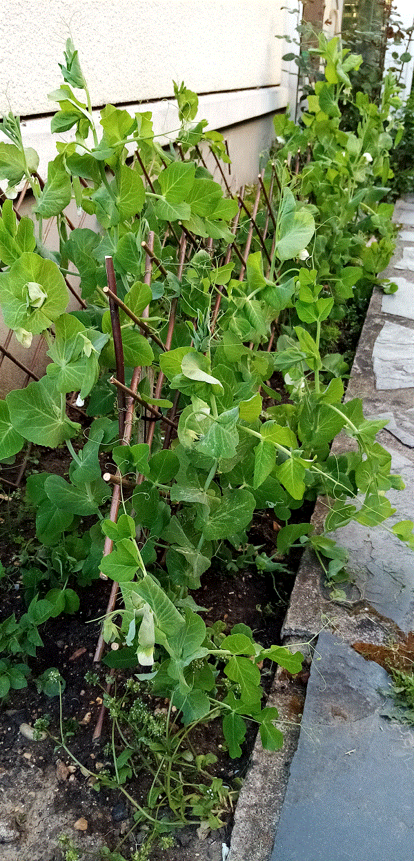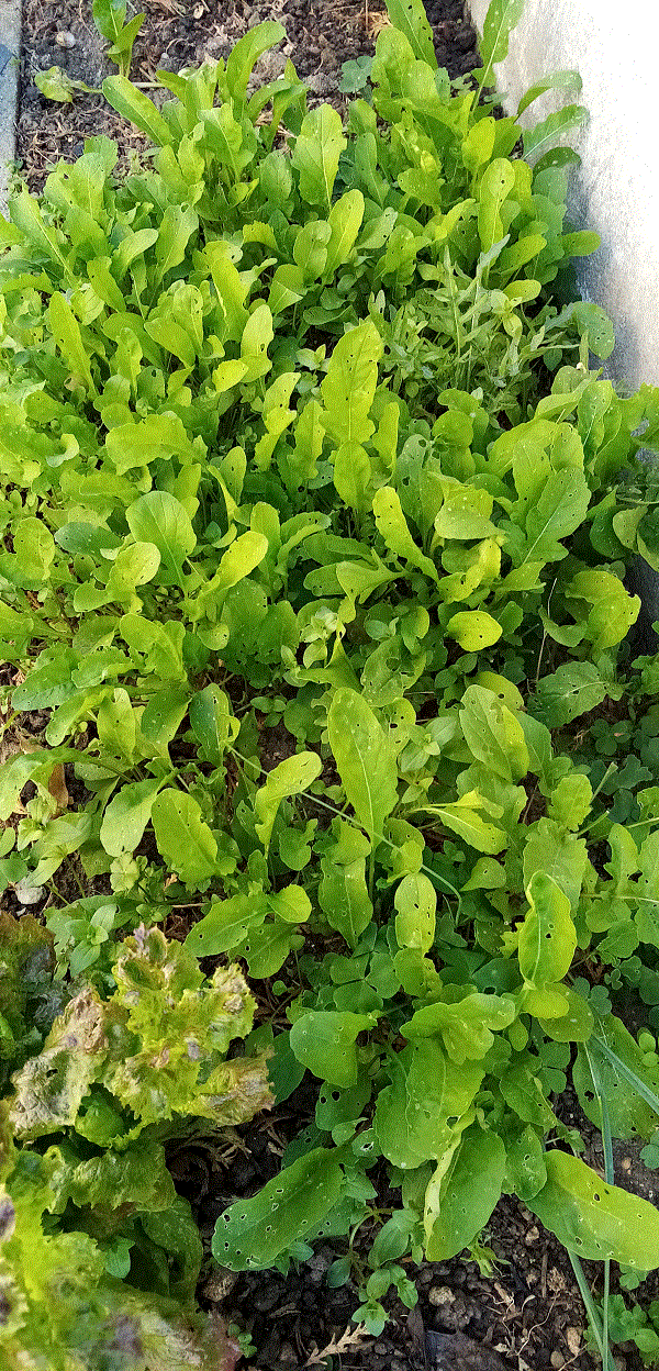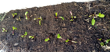 Les bordures avec betteraves, blettes, roquettes et mes petits pois ratés.