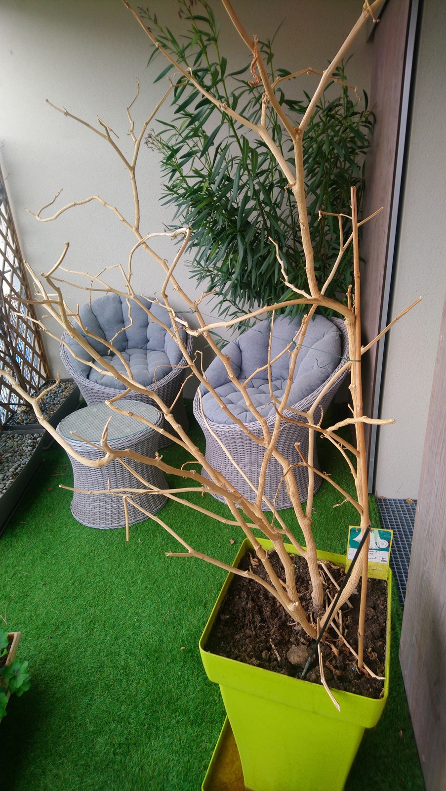 C est très bizarre, j en ai deux et ils sont pleins de feuilles . Moi je le couperai a 30 cm, ça pousse vite une fois que c est parti