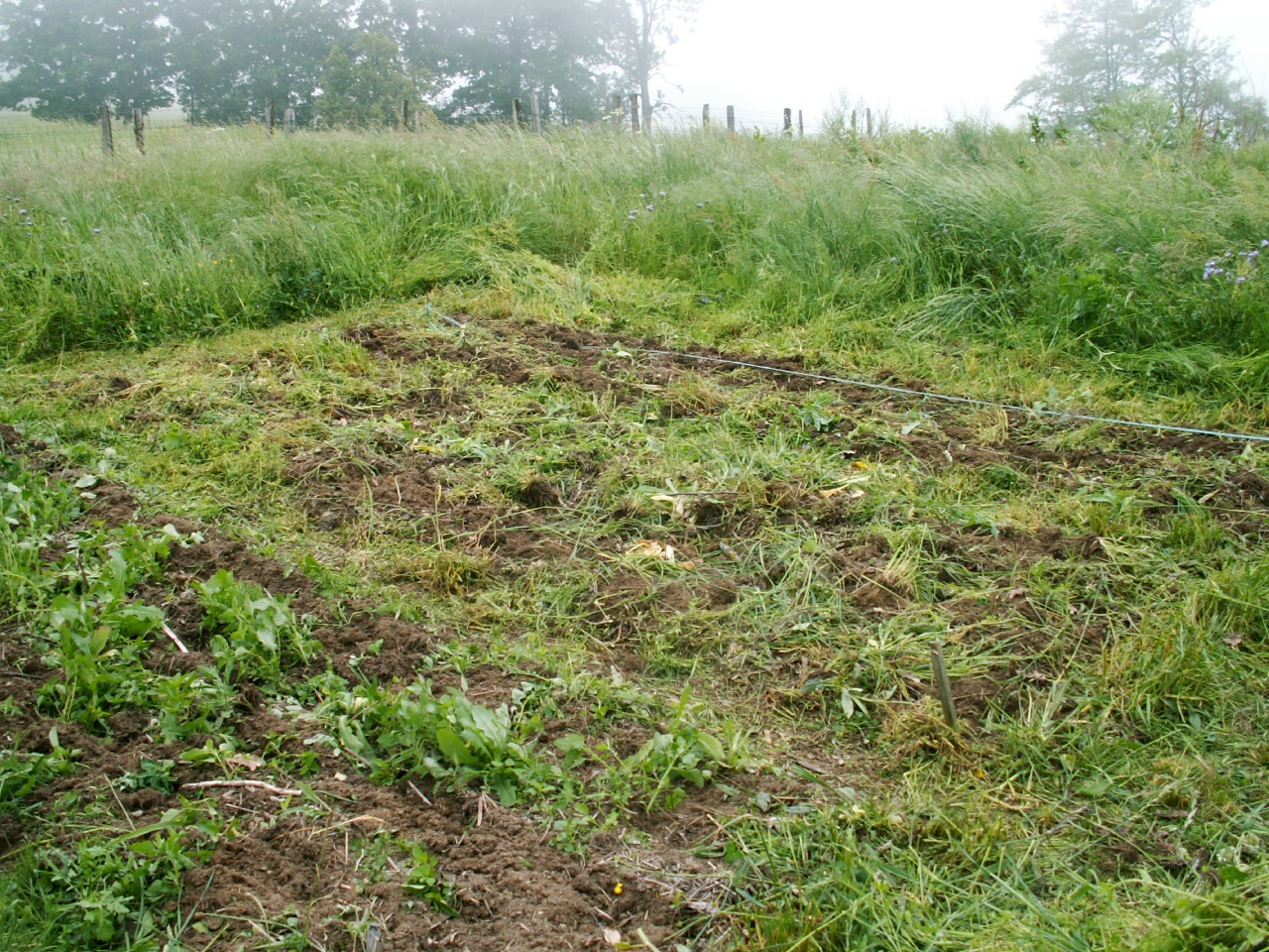 Photo prise du même endroit que la précédente après la plantation de 3 planches de pommes de terre :
