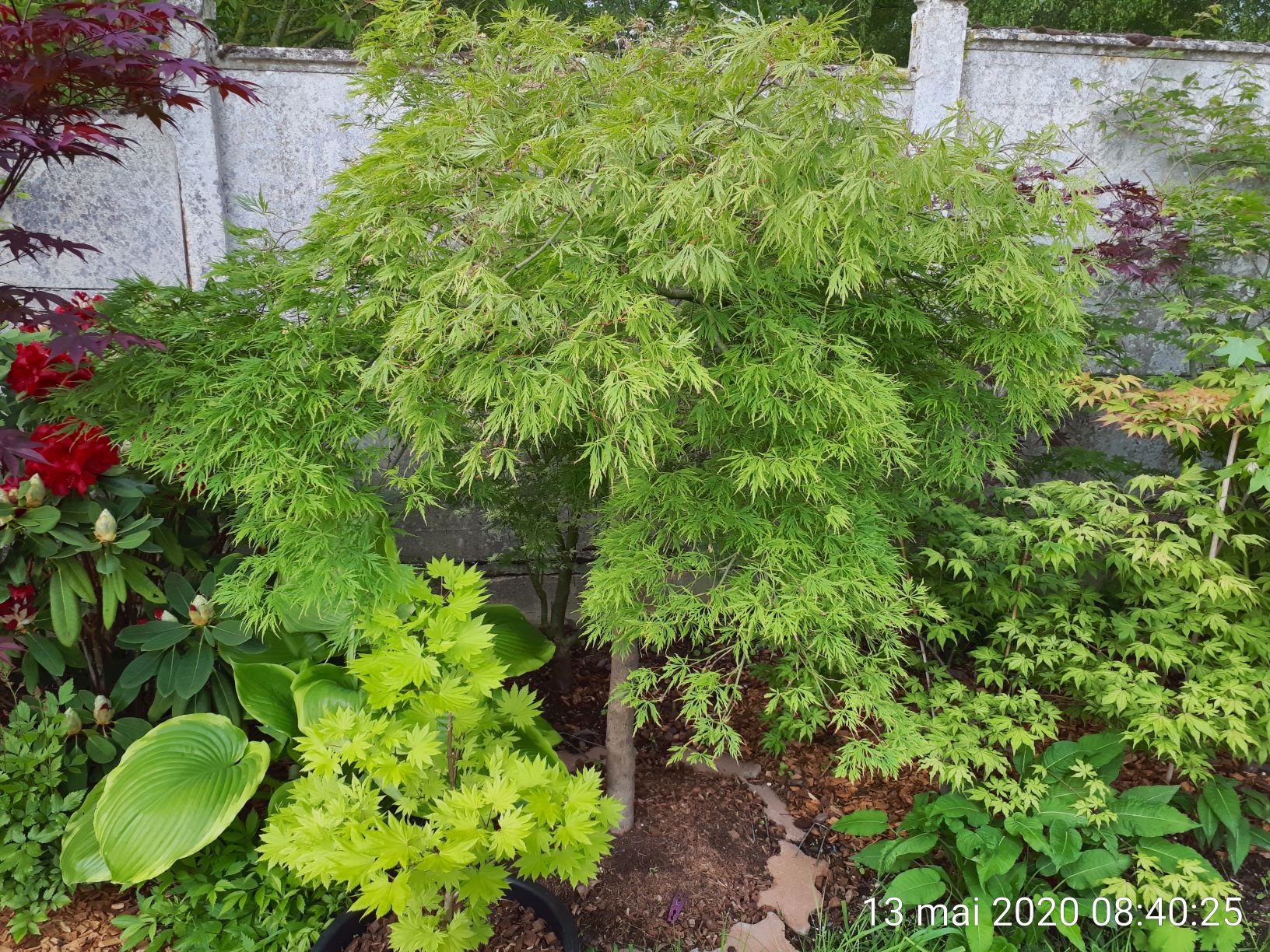 'viridis' est passé à l'automne dernier de son container à la pleine terre. Je l'ai taillé pour qu'il ne prenne pas trop de place au milieu des autres érables.