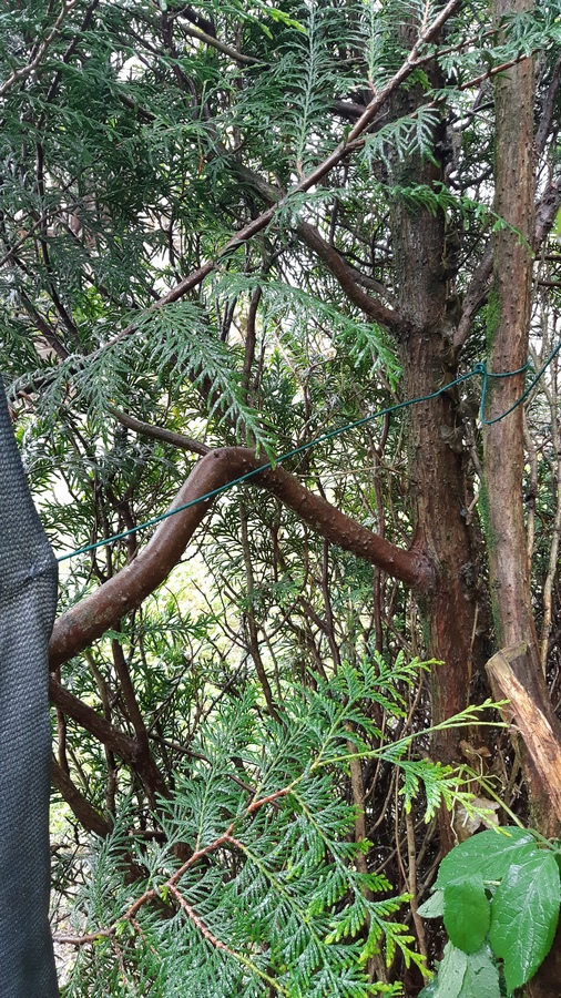 Le deuxième point c'est que attaché le brise vu après une branche de thuya ne me semble pas judicieux.